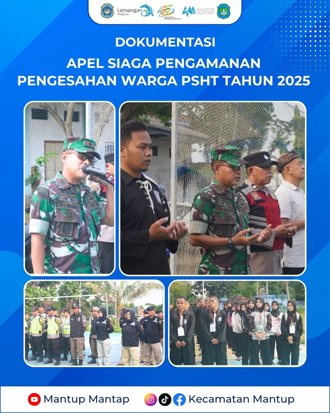 Polsek Mantup gelar Apel pengamanan dalam rangka pengesahan warga baru Persaudaraan Setia Hati Terate (PSHT) Ranting Mantup Cabang Lamongan Tahun 2025, Selasa Sore (8/7/2025)