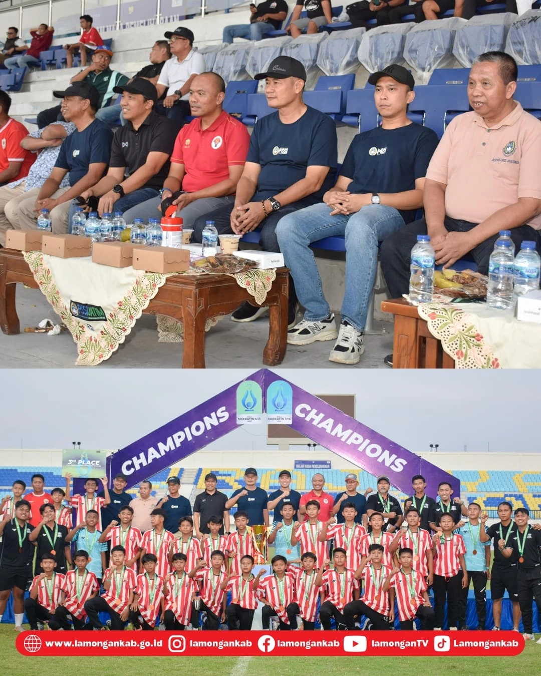 Bupati Lamongan Yuhronur Efendi menutup turnamen Soeratin Cup 2025, Minggu (10/8) di Stadion Surajaya sore ini.