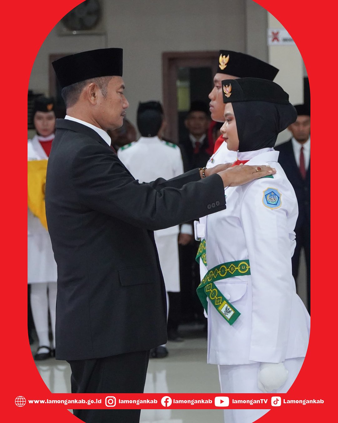 Menjelang Peringatan Hari Ulang Tahun (HUT) ke-80 Republik Indonesia, sebanyak 76 anggota Pasukan Pengibar Bendera Pusaka (Paskibraka) Kabupaten Lamongan tahun 2025 resmi dikukuhkan oleh Bupati Lamongan, Yuhronur Efendi, di Pendopo Lokatantra, Jumat (15/8/2025) malam.