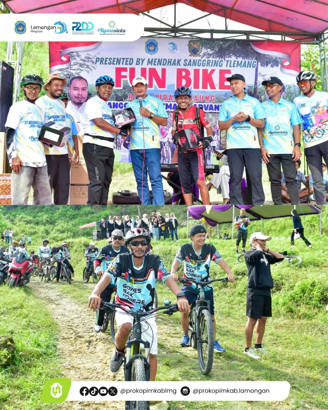 Bupati Lamongan Yuhronur Efendi memberangkatkan Sanggring Tlemang Adventure, ajang bersepeda yang menjadi rangkaian dari tradisi tahunan Mendhak Sanggring di Desa Tlemang, Kecamatan Ngimbang, Minggu (16/11). Bupati YES berharap penyelenggaraan kegiatan ini dapat mempromosikan budaya Mendhak Sanggring yang telah ditetapkan sebagai Warisan Budaya Tak Benda oleh Kementerian Kebudayaan RI, sekaligus mendorong minat kunjungan ke Lamongan.