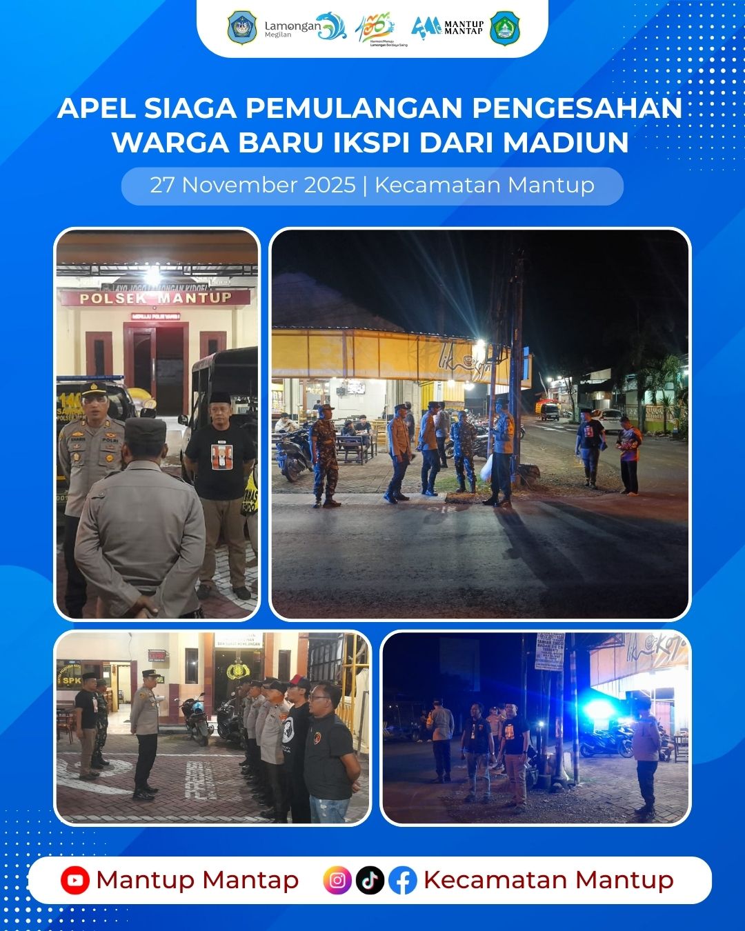 Apel siaga diikuti oleh jajaran Kecamatan Mantup, Polsek Mantup, Koramil Mantup, Satpol PP, serta perwakilan pengurus IKSPI. Apel tersebut bertujuan memastikan proses pemulangan berjalan tertib, aman, dan kondusif tanpa menimbulkan gangguan ketertiban umum.