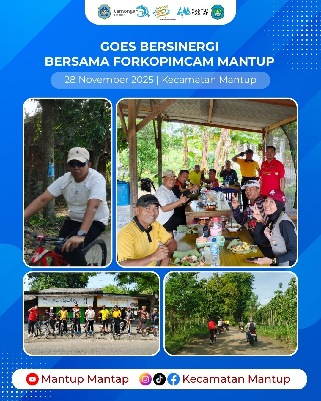 Forkopimcam Mantup melaksanakan kegiatan Goes Bersinergi pada (Jum’at, 28/11/2025), sebagai upaya mempererat kolaborasi dan sinergitas antara unsur pemerintahan, keamanan, dan masyarakat. Kegiatan bersepeda sehat ini diikuti oleh jajaran Kecamatan Mantup, Polsek Mantup serta Koramil Mantup.