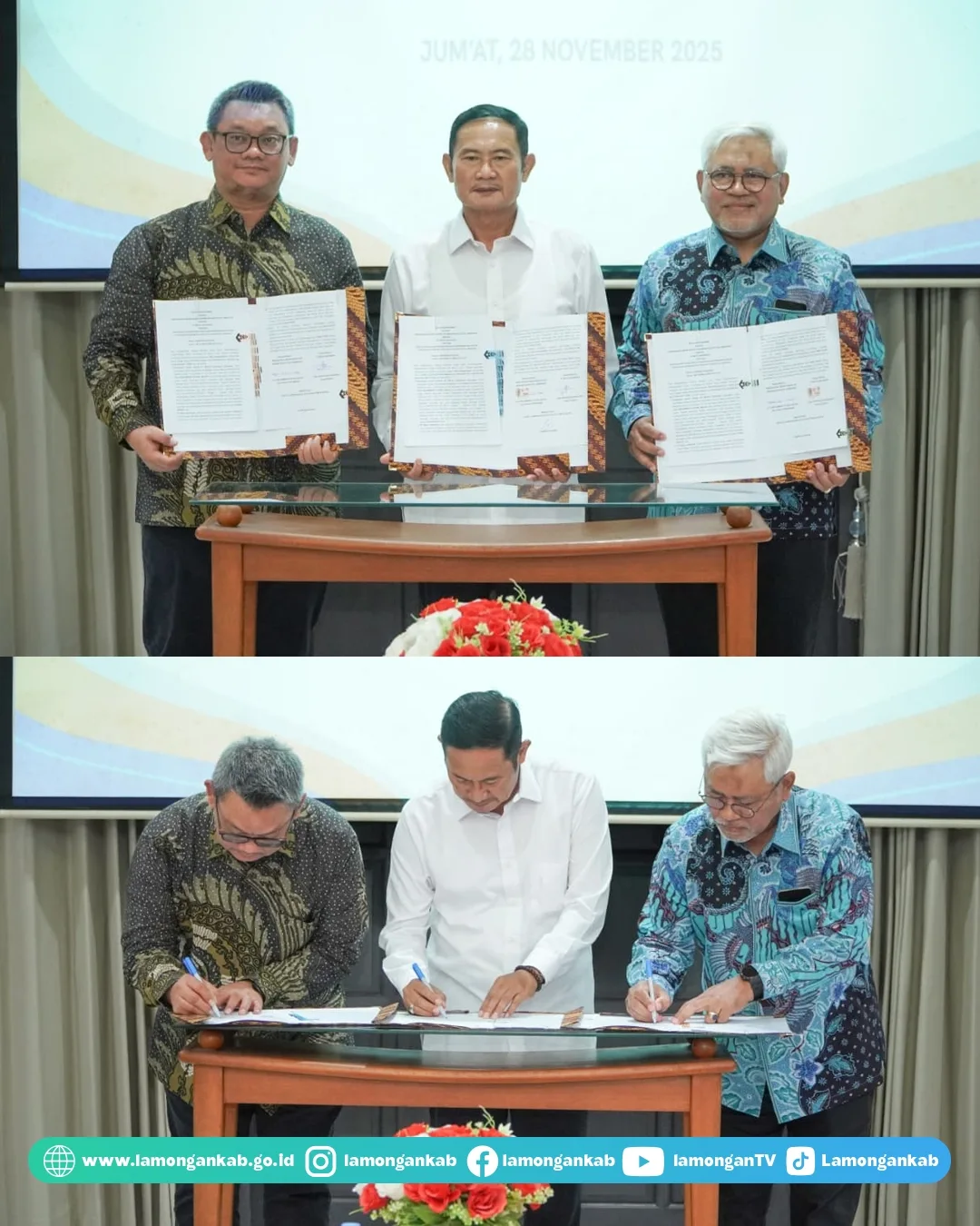 Dimulainya kolaborasi tersebut ditandai dengan penandatanganan nota kesepahaman antara Perusahaan Umum Daerah Air Minum Kabupaten Lamongan, Bupati Lamongan Yuhronur Efendi, dan PT Moya Indonesia, Jumat (28/11) di Guest House Pemkab Lamongan.