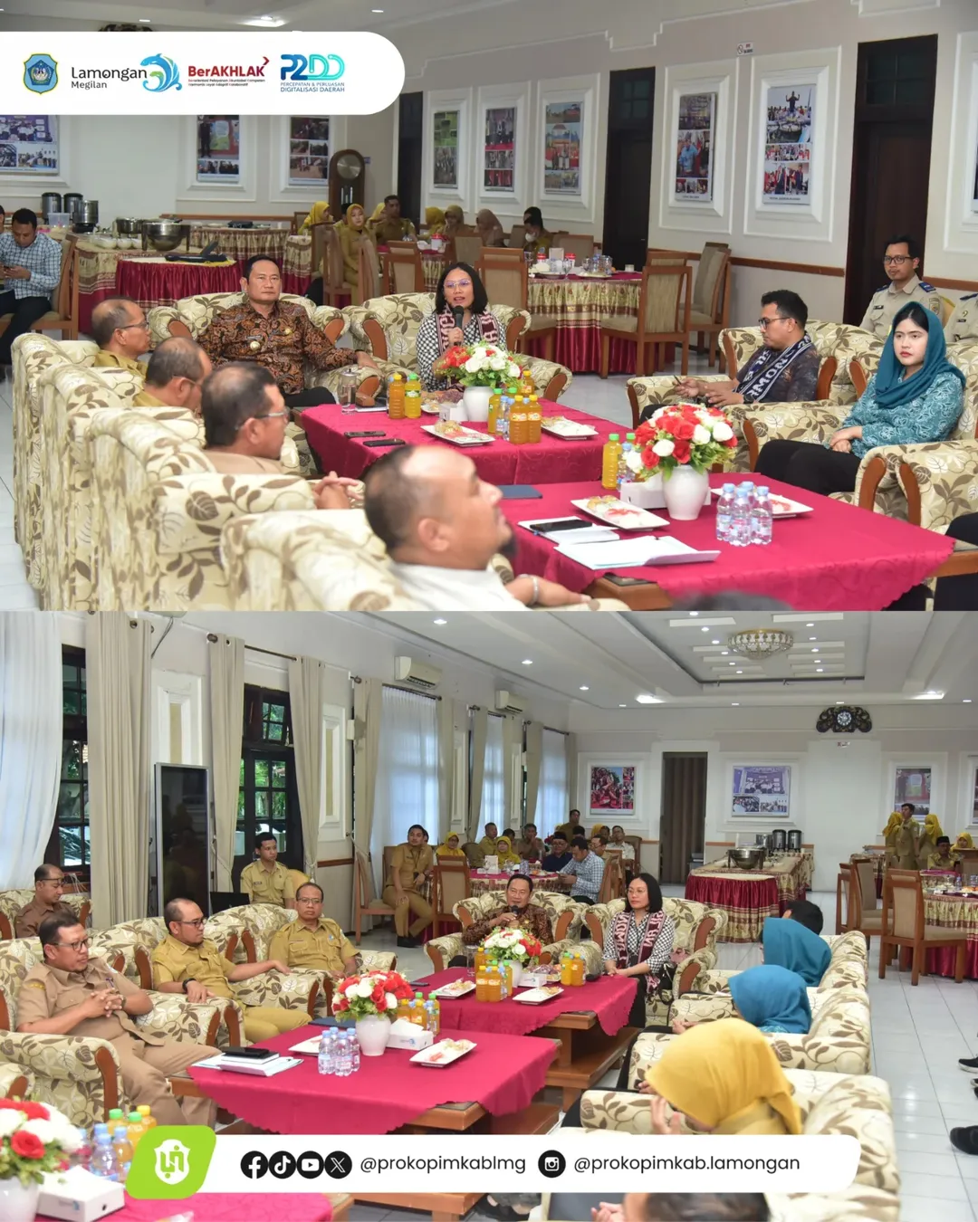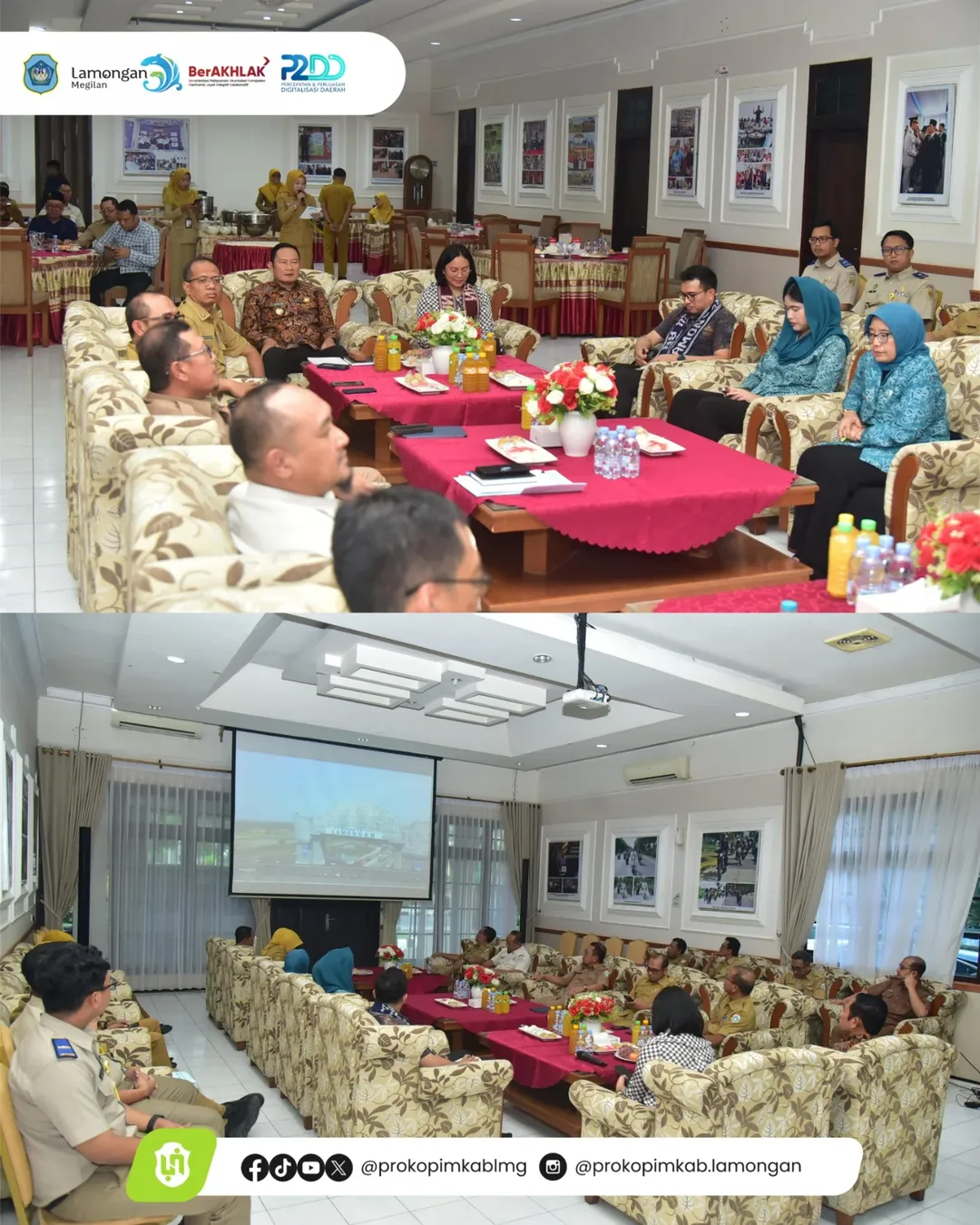 Bupati Lamongan Yuhronur Efendi pada Selasa (18/11), menerima kunjungan Tim Penilai Innovative Government Award (IGA) 2025 di Guest House Pendopo Lokatantra Lamongan. Kunjungan ini dilaksanakan dalam rangka verifikasi lapangan perihal penilaian inovasi yang dilaksanalan di Lamongan, dalam hal ini inovasi digital Simaya (Sistem Informasi Pembayaran PBB-P2) dan inovasi non digital Laserku (Lamongan Sehat Sejahtera dengan Kunjungan Rumah).