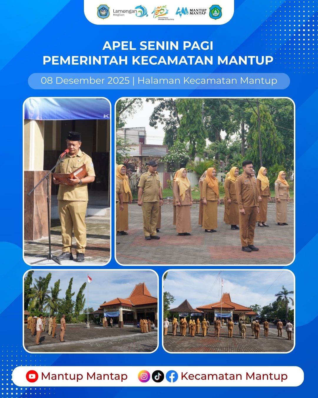 Pemerintah Kecamatan Mantup melaksanakan Apel Senin Pagi pada (8/12) di halaman Kantor Kecamatan Mantup. Kegiatan ini diikuti oleh seluruh pegawai Kecamatan Mantup serta perwakilan dari Koordinator PPKB.