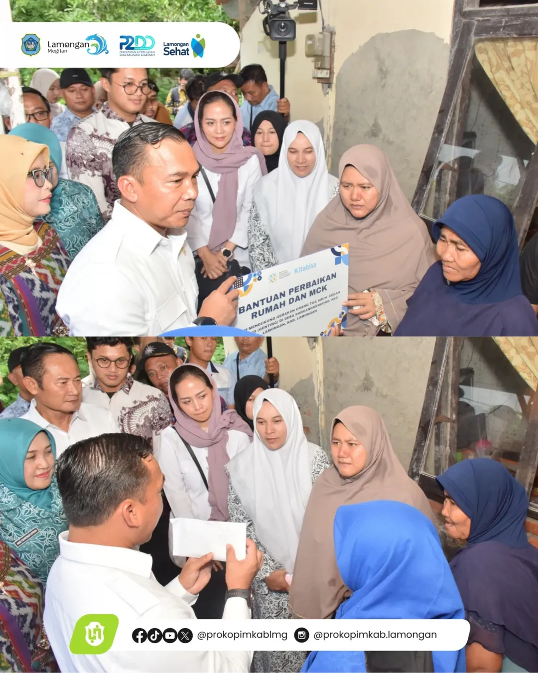 Bupati Lamongan Yuhronur Efendi bersama jajaran Forkopimda mendampingi Menteri Kependudukan dan Pembangunan Keluarga (Mendukbangga) RI, Wihaji, mengunjungi salah satu Keluarga Risiko Stunting (KRS) di Desa Rancangkencono, Kecamatan Lamongan, Kamis (4/12). Kunjungan ini dalam rangka memastikan KRS mendapatkan pemenuhan gizi dan tempat tinggal yang layak sebagai bentuk pencegahan stunting.