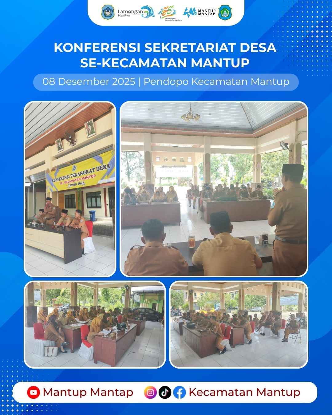 Pemerintah Kecamatan Mantup menyelenggarakan Konferensi Sekretariat Desa se-Kecamatan Mantup pada Senin (8/12) di Pendopo Kecamatan Mantup, Kegiatan ini sebagai forum resmi dalam rangka penguatan tata kelola administrasi pemerintah desa serta peningkatan kapasitas aparatur sekretariat desa. Kegiatan ini diikuti oleh seluruh Sekretaris Desa beserta unsur administrasi desa meliputi Kepala Urusan Keuangan, Kepala Urusan Perencanaan serta Kepala Urusan Umum dan TU.