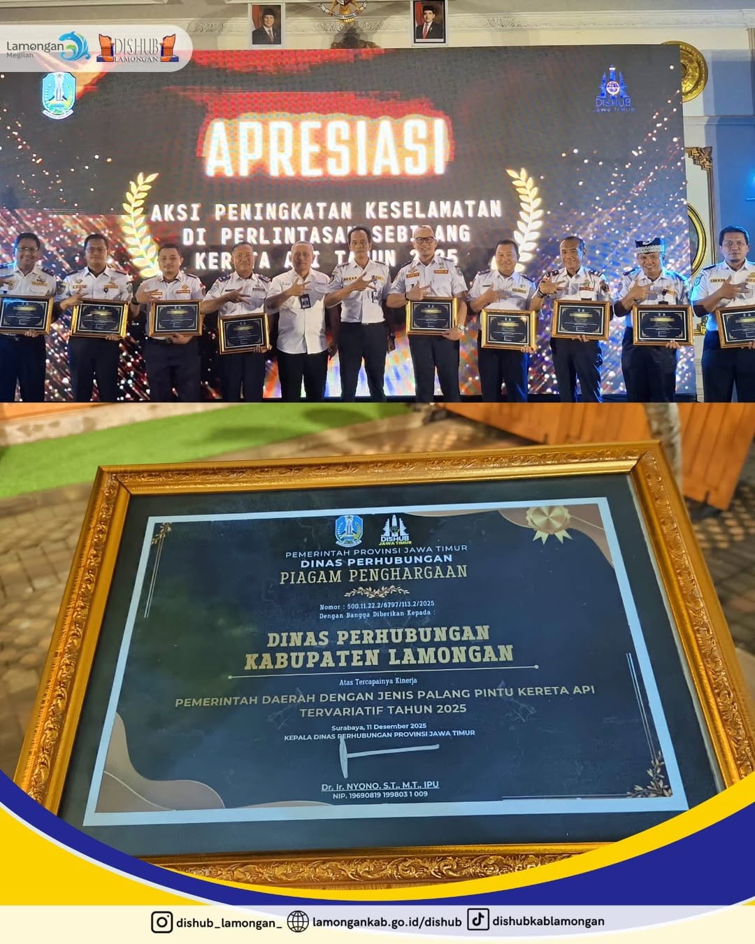 Pemkab Lamongan meraih Apresiasi Pemerintah Daerah dengan Jenis Palang Pintu Kereta Api Tervariatif Tahun 2025.