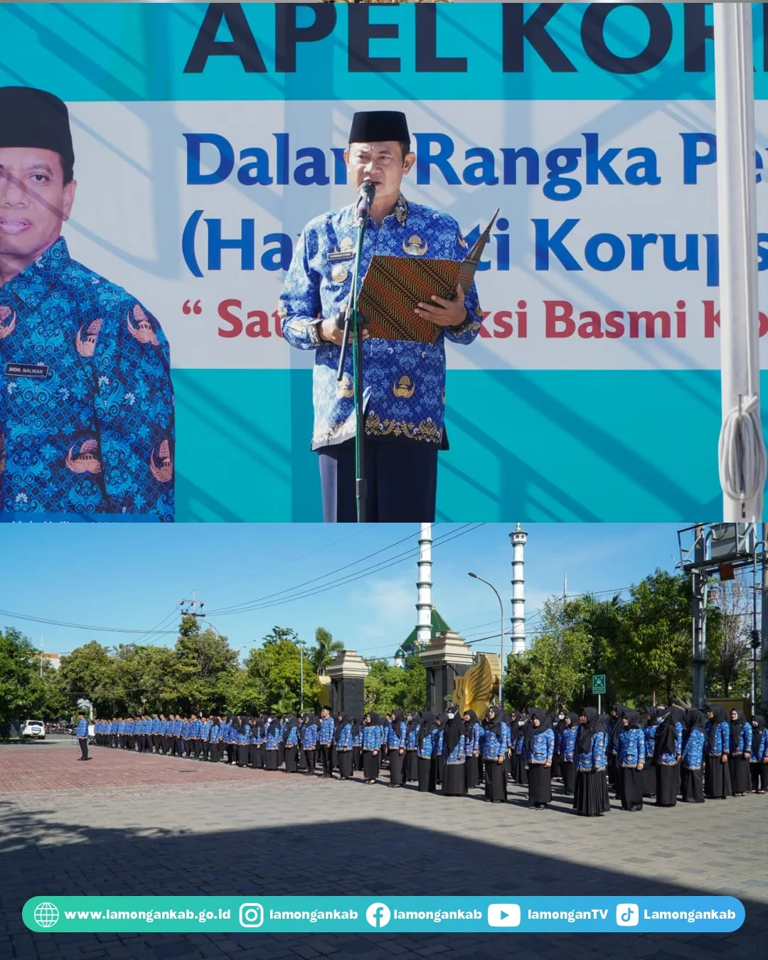 Dituturkan oleh Bupati Lamongan Yuhronur Efendi saat memimpin apel Korpri dalam rangka memperingati Hari Anti Korupsi Sedunia tahun 2025, Rabu (17/12) di Halaman Gedung Pemkab Lamongan, digitalisasi menjadi salah satu strategi efektif untuk menutup celah korupsi melalui sistem yang transparan, akuntabel, efesien dan berbasis teknologi.