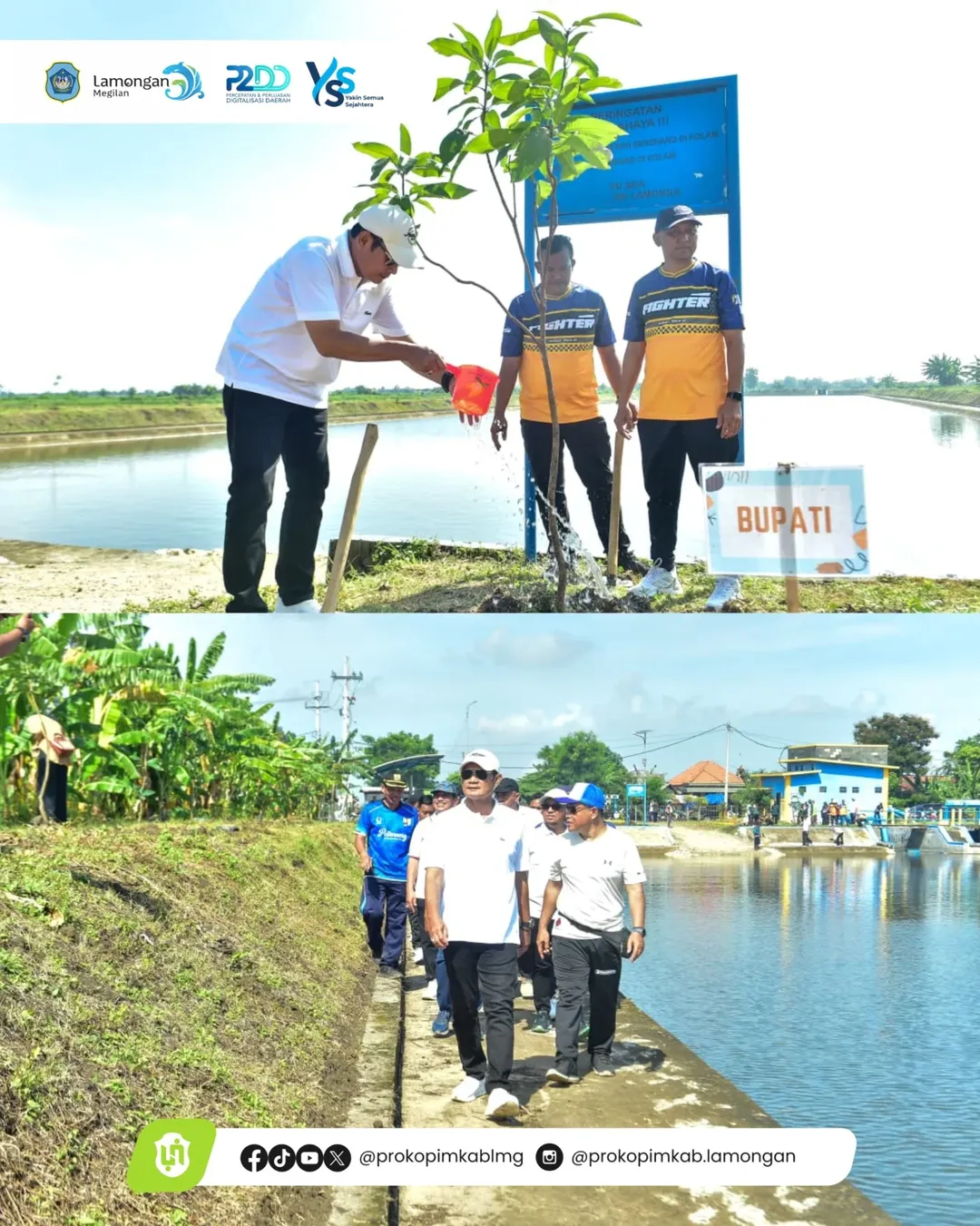 Bupati YES juga meninjau kondisi kolam retensi demi memastikan fungsinya sebagai pencegahan banjir dalam kota. Sebanyak 100 pohon mangga juga ditanam untuk menambah vegetasi di lingkungan kolam retensi.