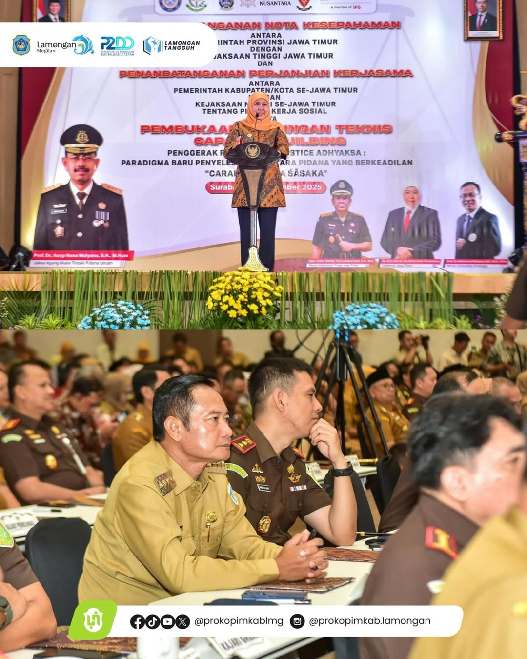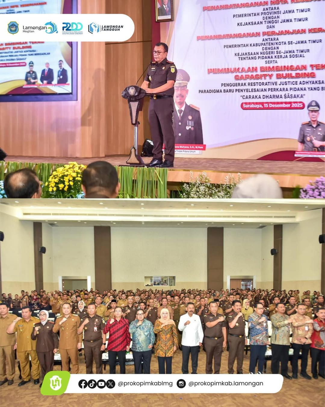 Acara yang di hadiri oleh Bupati/Walikota Se-Jawa Timur dan Kepala Kejaksaan Negeri Kabupaten Kota Se-Jawa Timur ini menjadi langkah strategis dalam memperkuat sinergi antara pemerintah daerah dan kejaksaan untuk mewujudkan penegakan hukum yang lebih humanis, berkeadilan, serta berorientasi pada pemulihan sosial di tengah masyarakat.