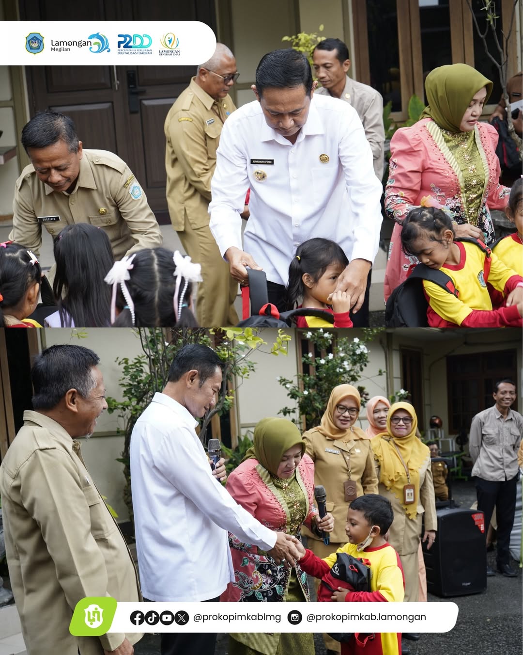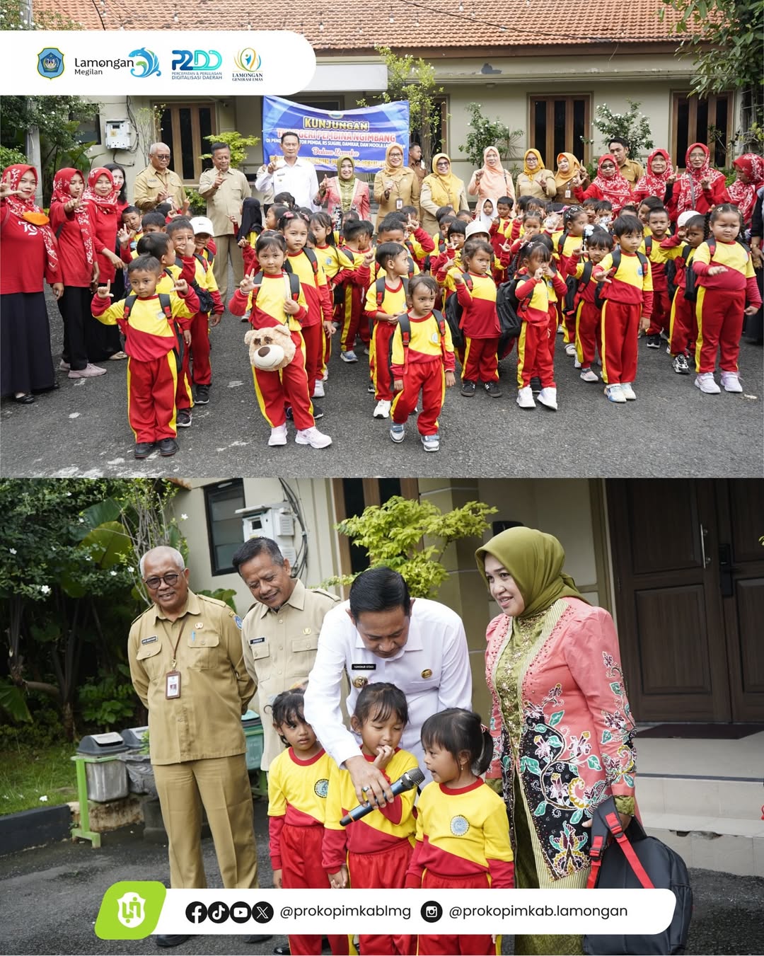 Bupati Lamongan, Yuhronur Efendi, didampingi Bunda PAUD Kabupaten Lamongan, Anis Kartika Yuhronur Efendi, menyambut kedatangan 80 siswa dari TK Negeri Pembina Ngimbang di Halaman Pendopo Lokatantra, Selasa (16/12). Dengan suasana penuh keceriaan, Pak Yes berdialog langsung sekaligus memotivasi anak-anak untuk giat belajar, berani bermimpi, dan memiliki cita-cita yang tinggi, sehingga bisa memberikan manfaat bagi bangsa khususnya Kabupaten Lamongan.