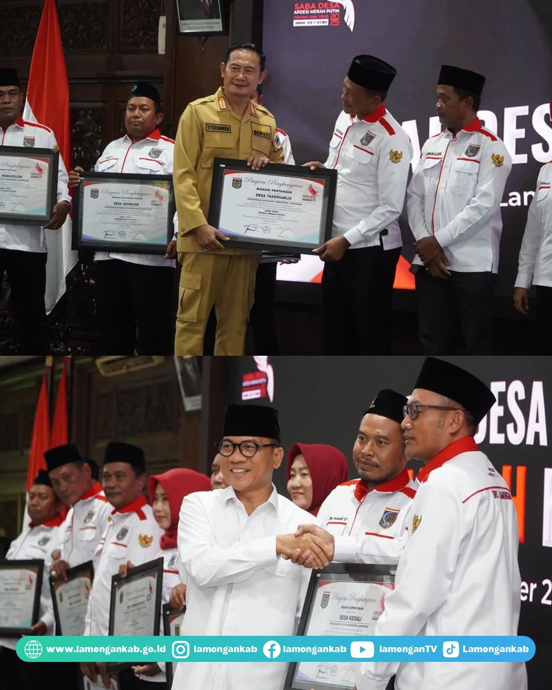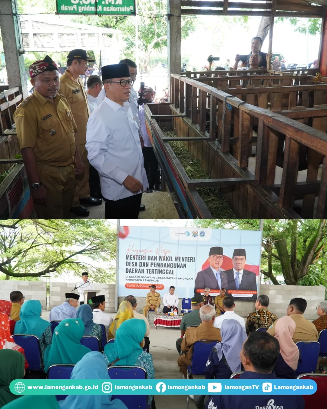 Pemerintah Kabupaten Lamongan menerima kunjungan Menteri Desa, Pembangunan Daerah Tertinggal, dan Transmigrasi (Mendes PDTT) RI Yandri Susanto beserta jajaran pada kegiatan saba desa Dewan Pimpinan Pusat Asosiasi Pemerintah Desa Seluruh Indonesia (DPP Apdesi) Merah Putih, Senin (22/12) di Koperasi Desa Merah Putih (KDMP) Plosowahyu.