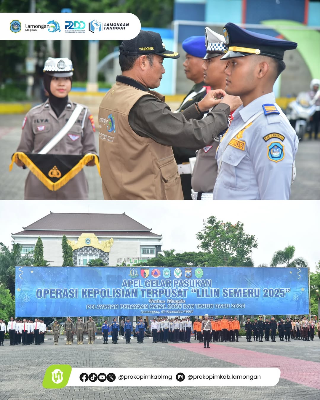 Bertempat di Alun-Alun Lamongan, Jumat (19/12), dilaksanakan Apel Gelar Pasukan Operasi Terpusat "Lilin Semeru 2025". Hadir sebagai Pembina Apel, Bupati Lamongan Yuhronur Efendi menyampaikan bahwa kegiatan ini sebagai salah satu bentuk kesiapan menjelang Hari Raya Natal 2025 dan Tahun Baru 2026. Beliau menambahkan bahwa Operasi Lilin Semeru 2025 akan berlangsung selama 14 hari, mulai tanggal 20 Desember 2025 hingga 2 Januari 2026 dengan tujuan menjamin kesejahteraan dan keamanan dari segala potensi ancaman atau gangguan baik sebelum, saat, dan setelah perayaan Nataru khususnya di Kabupaten Lamongan.