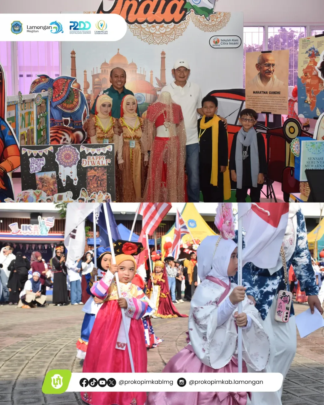 Bupati Lamongan Yuhronur Efendi mengapresiasi pelaksanaan International Day yang diselenggarakan Sekolah Alam Citra Insani Lamongan, Sabtu (20/12). Kegiatan yang menampilkan ragam budaya dari 17 negara tersebut dinilai memberi pengalaman belajar bagi anak-anak untuk mengenal dunia internasional serta memperluas wawasan global sejak dini.