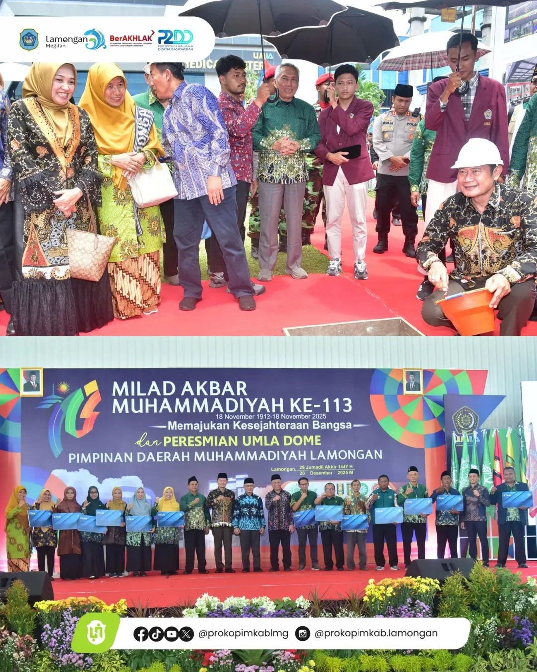 Dalam acara Milad Muhammadiyah ke-113 dan Peresmian UMLA Dome di Universitas Muhammadiyah Lamongan pada Sabtu (20/12), Pimpinan Pusat Muhammadiyah, Prof. Haedar Nasir, memberikan apresiasi kepada PDM Lamongan dan Pemerintah Kabupaten Lamongan atas peluncuran Aumkes Holding, yang meliputi 5 Rumah Sakit dan 10 Klinik Muhammadiyah. Prof Haedar, menekankan pentingnya sinergi yang kuat dengan pemerintah daerah untuk memastikan pelayanan kesehatan yang berkualitas bagi masyarakat dapat berjalan secara optimal.