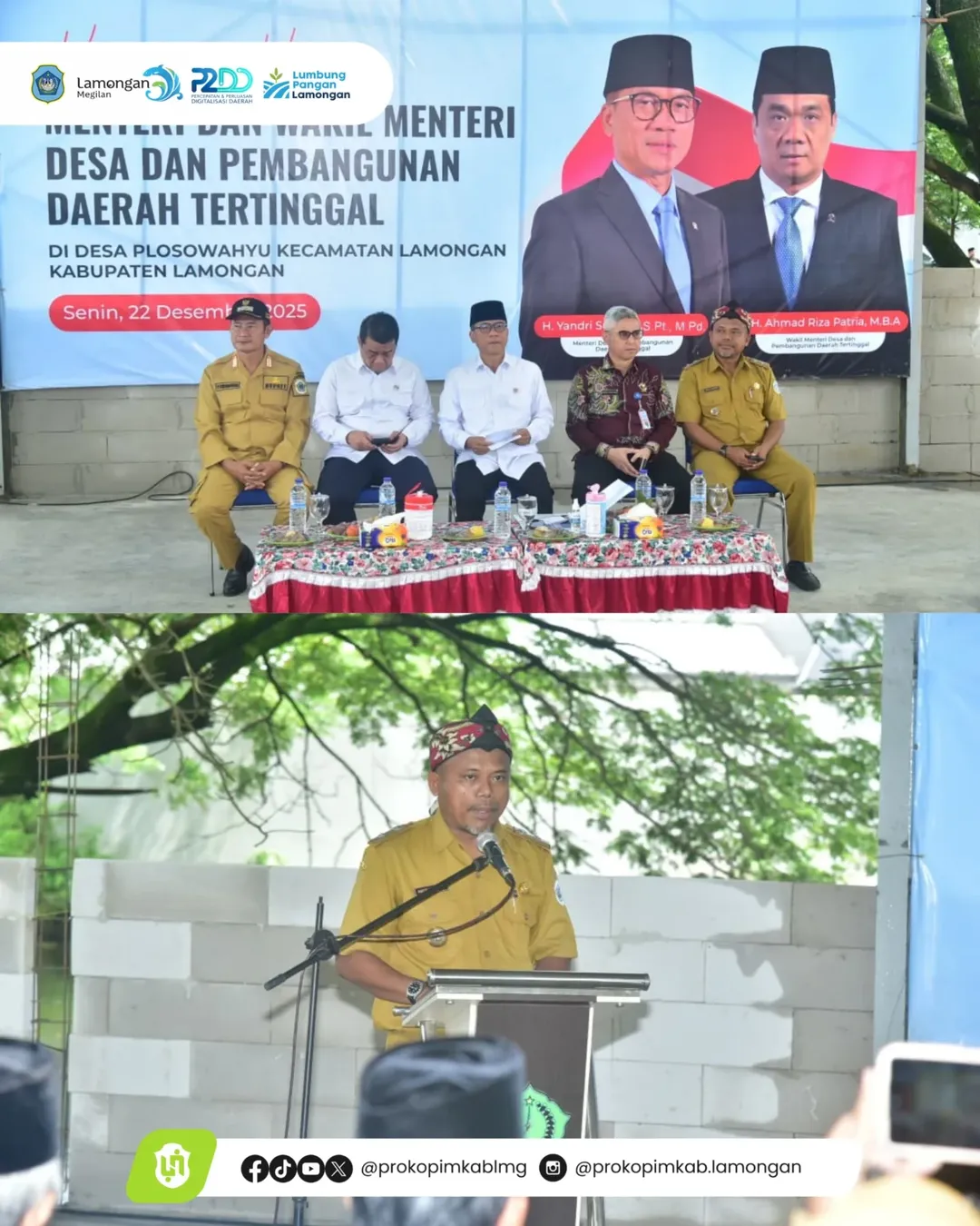 Menteri Desa dan Pembangunan Daerah Tertinggal (Mendes PDT), Yandri Susanto, mengapresiasi progres pengembangan Koperasi Desa Merah Putih (KDMP) dan Badan Usaha Milik Desa (Bumdes) Desa Plosowahyu, Kecamatan Lamongan, yang mampu bersinergi dengan produktif. Hal tersebut disampaikannya saat melakukan kunjungan kerja di Lamongan, didampingi Wakil Mendes PDT Ahmad Riza Patria dan Bupati Lamongan Yuhronur Efendi, Senin (22/12).