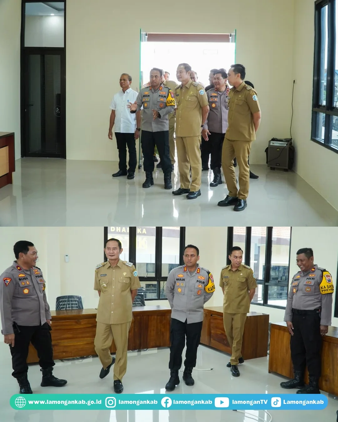 "Pemkab Lamongan terus menjalin kolaborasi bersama Forkopimda hingga sektor lain, yangmana tujuan utamanya adalah memberikan kualitas pelayanan kepada masyarakat yang maksimal. Salah satunya melalui pemenuhan sarana prasarana yang hari ini diresmikan," tutur Pak Yes.