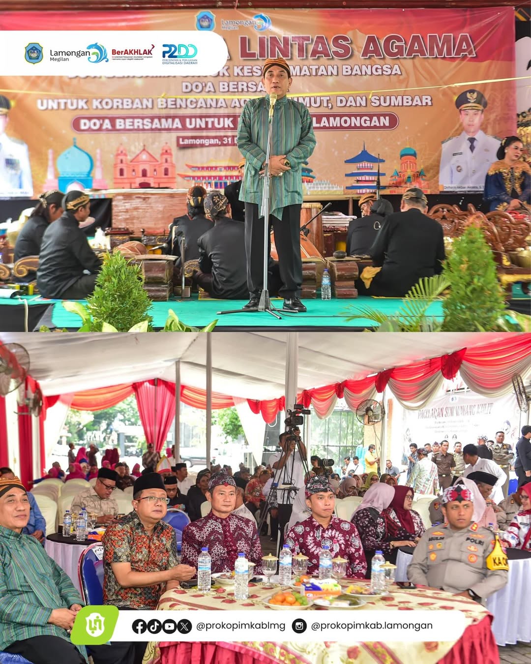 Acara yang diinisiasi dengan kebersamaan lintas etnis dan agama ini juga diwarnai doa khusus bagi saudara-saudara di Sumatra dan Aceh yang terdampak banjir, agar selalu diberi kekuatan, kesehatan, serta kemudahan. Selain doa lintas agama, turut digelar pagelaran Wayang Purwo sebagai simbol ruwatan, wujud ikhtiar bersama untuk menolak balak dan mengusir hal-hal buruk dari Kabupaten Lamongan.