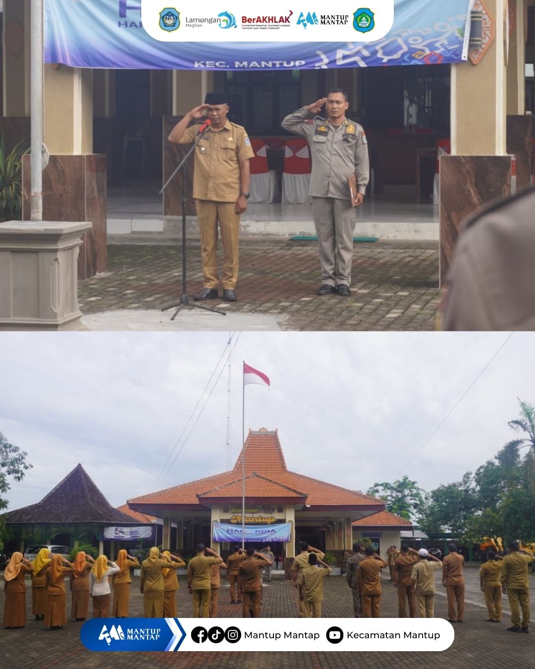 Pemerintah Kecamatan Mantup melaksanakan Apel Senin Pagi bertempat di Halaman Kantor Kecamatan Mantup. Kegiatan ini diikuti oleh para Kepala Seksi, Kepala Subbagian, serta seluruh staf Kecamatan Mantup.