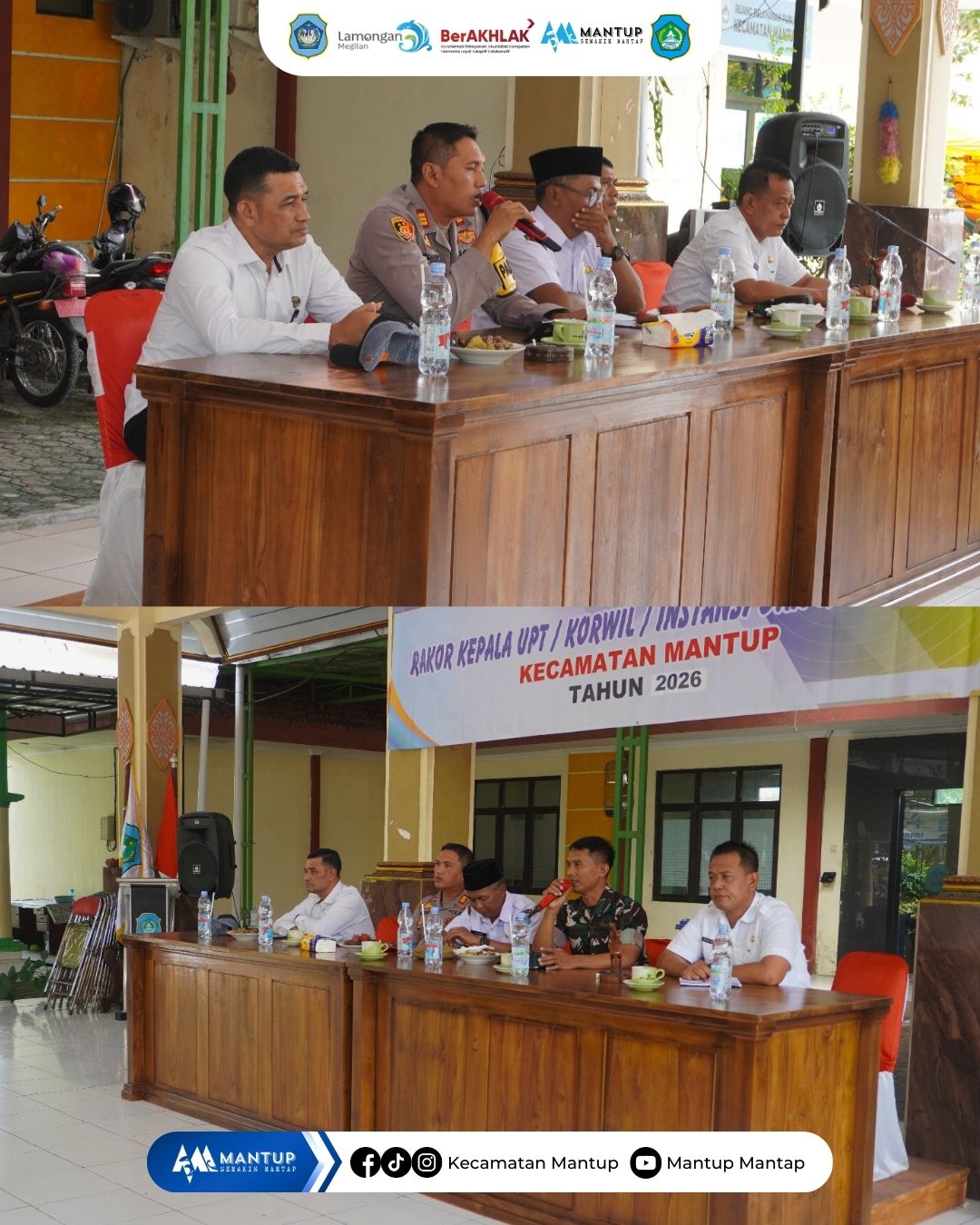Pemerintah Kecamatan Mantup menyelenggarakan Rapat Koordinasi Lintas Sektoral pada Rabu, (14/1) di Pendopo Kecamatan Mantup. Sebagai upaya memperkuat sinergi dan koordinasi antar instansi di wilayah Kecamatan Mantup dalam rangka mendukung kelancaran penyelenggaraan pemerintahan, pembangunan, serta pelayanan kepada masyarakat.