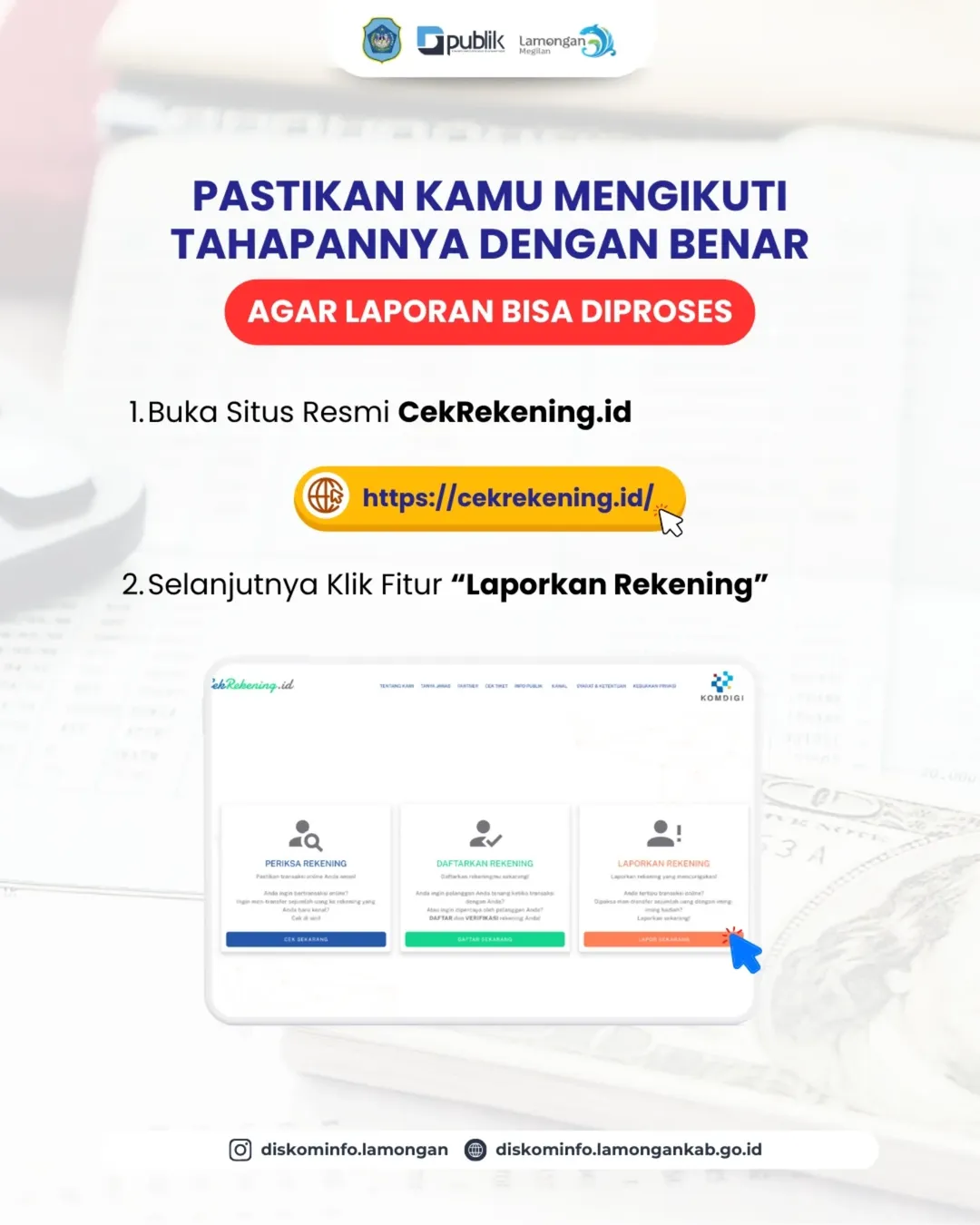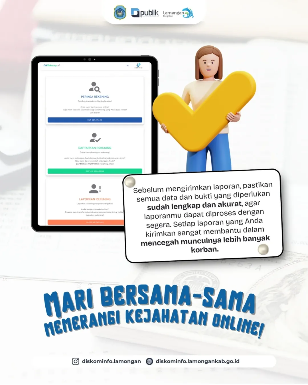 Sekarang, kamu punya peran penting untuk memutus rantai penipuan online dengan lapor di CekRekening.id.