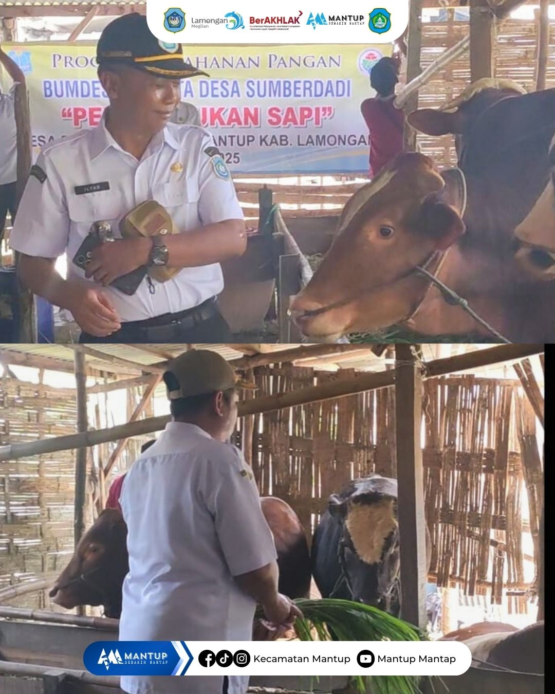 Sebagai upaya pembinaan dan pengawasan pemerintah kecamatan guna memastikan program berjalan sesuai perencanaan serta memberikan manfaat nyata bagi masyarakat. Camat Mantup ILYAS, S.Kep., Ns. melakukan peninjauan langsung terhadap pelaksanaan Program Ketahanan Pangan dengan sumber anggaran dari Dana Desa Tahun Anggaran 2025 melalui sektor peternakan sapi di Desa Sumberdadi, Kecamatan Mantup pada Rabu (21/1).