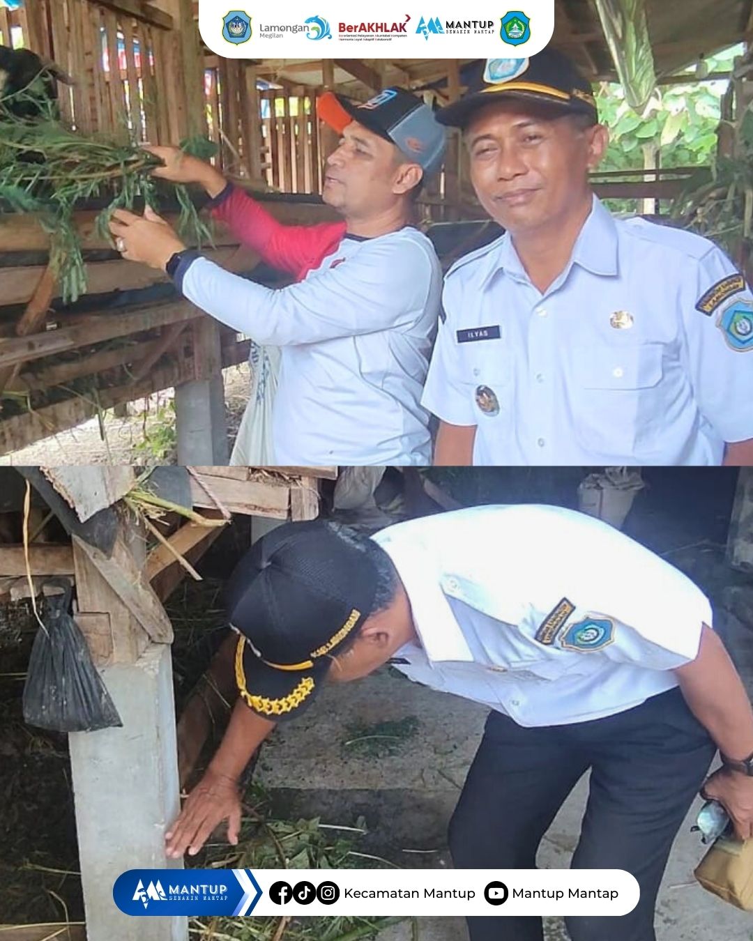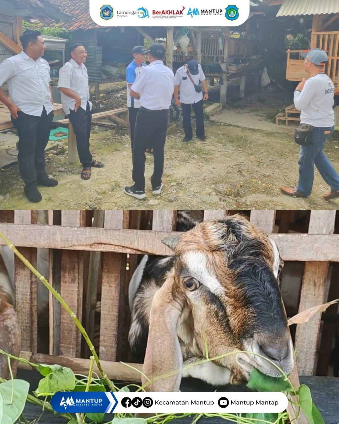 Camat Mantup meninjau secara langsung pelaksanaan Program Ketahanan Pangan melalui sektor peternakan kambing di Desa Tugu, Kecamatan Mantup, pada Rabu (21/1). Program ini dilaksanakan oleh Pemerintah Desa Tugu dengan sumber anggaran dari Dana Desa Tahun Anggaran 2025 sebagai bagian dari upaya penguatan ketahanan pangan desa.