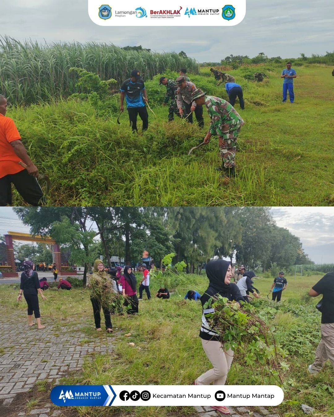 Forkopimcam Mantup bersama Pemerintah Desa Mantup melaksanakan kegiatan kerja bakti di Lapangan Mantup pada Kamis (22/1), sebagai bentuk sinergi lintas sektor dalam menjaga kebersihan, ketertiban, dan kenyamanan lingkungan. Kegiatan ini diikuti oleh unsur Forkopimcam Mantup, perangkat desa, BPD, serta masyarakat sekitar.