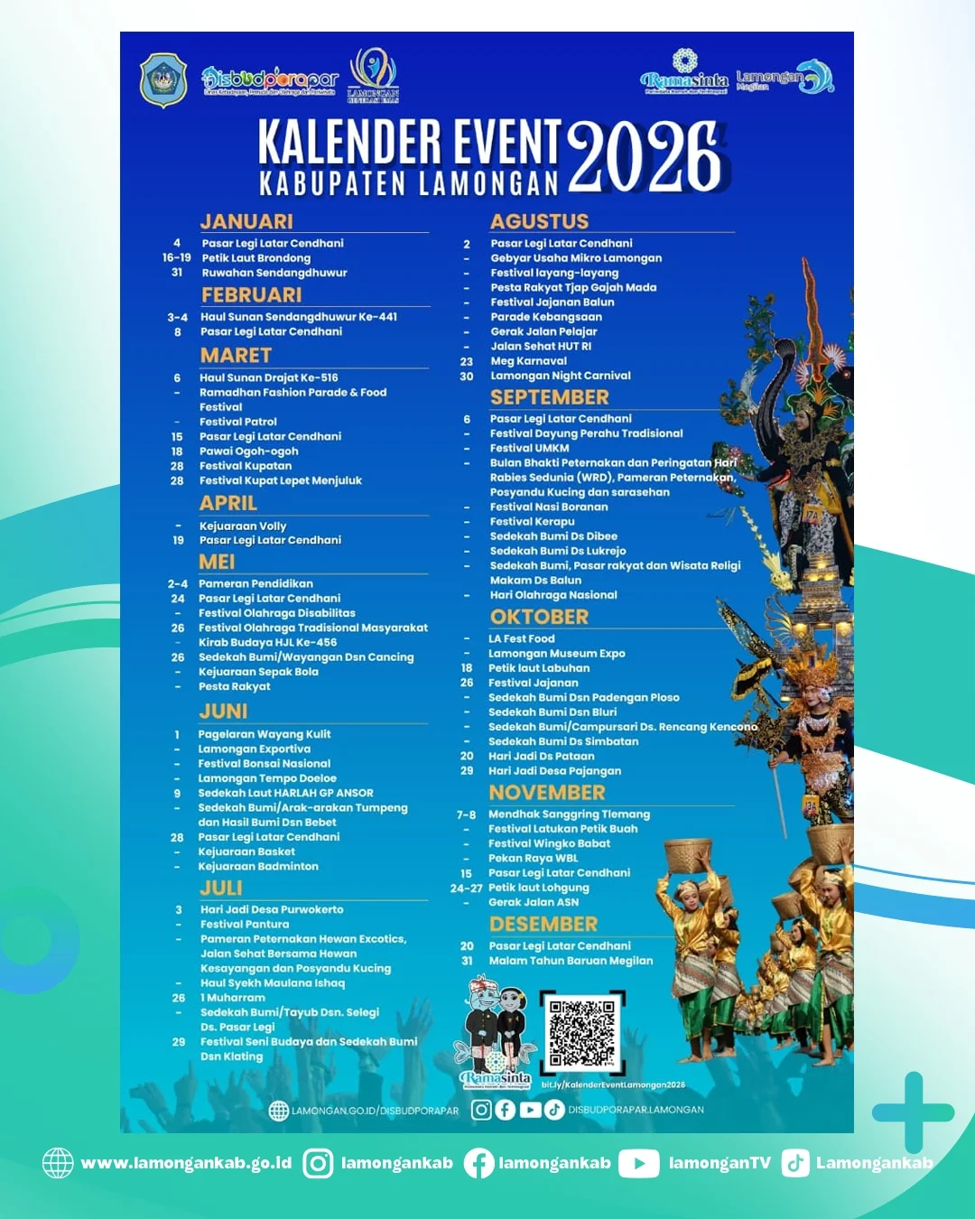 Kalender event 2026 telah resmi diluncurkan oleh Dinas Kebudayaan, Pemuda dan Olahraga dan Pariwisata Kabupaten Lamongan (Disbudporapar) pada minggu lalu.