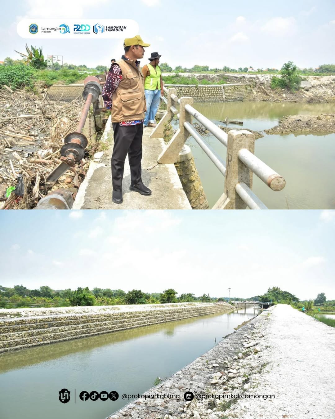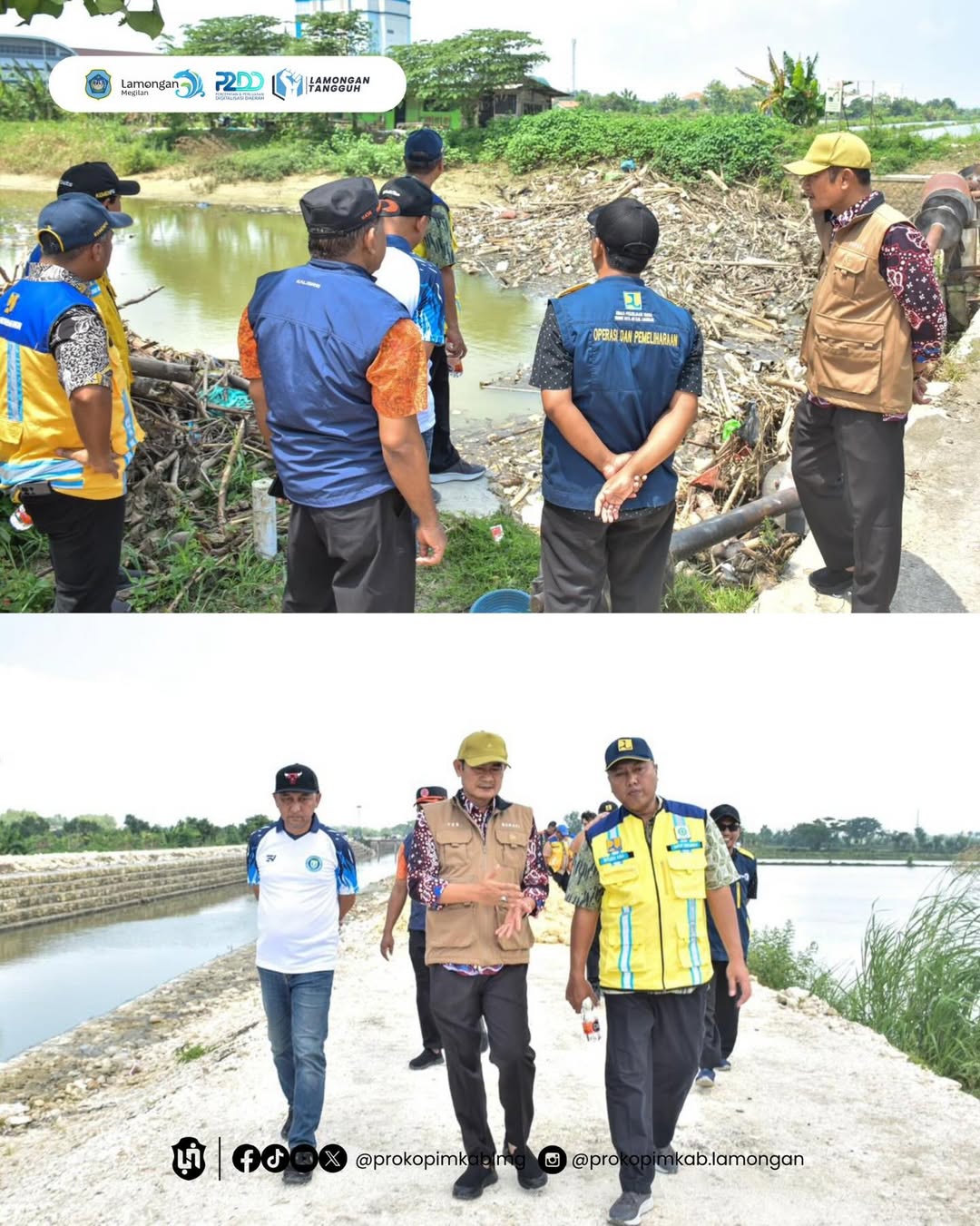 Bupati Lamongan Yuhronur Efendi bersama Kepala Balai Besar Wilayah Sungai Bengawan Solo (BBWSBS), meninjau langsung kegiatan penguatan tanggul sebagai upaya pengendalian dan penanganan banjir di Kali Plalangan yang merupakan bagian dari aliran Bengawan Jero, Jumat (30/1). Peninjauan tersebut dilakukan sebagai upaya percepatan penanganan banjir hingga ke arah hulu, guna meningkatkan kapasitas dan fungsi aliran sungai.