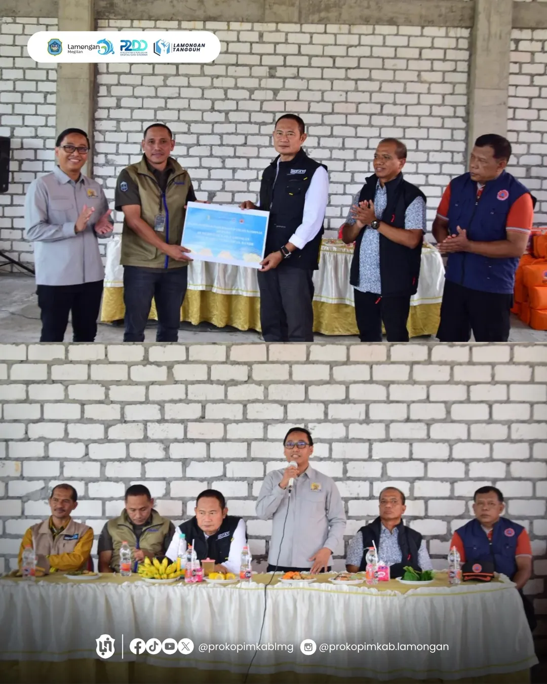 Bupati Lamongan Yuhronur Efendi bersama Anggota DPR RI Komisi VI Ahmad Labib menyerahkan bantuan pangan berupa beras dari Badan Pangan Nasional. Sebanyak 22,4 ton beras disalurkan kepada masyarakat terdampak banjir di lima kecamatan, yakni Kalitengah, Turi, Karangbinangun, Glagah, dan Deket, yang dipusatkan di Pendopo Kecamatan Kalitengah, Sabtu (31/1). Penyaluran cadangan beras pemerintah ini ditujukan untuk menjamin ketersediaan kebutuhan pokok serta meringankan beban masyarakat yang aktivitas ekonominya terganggu akibat luapan air.