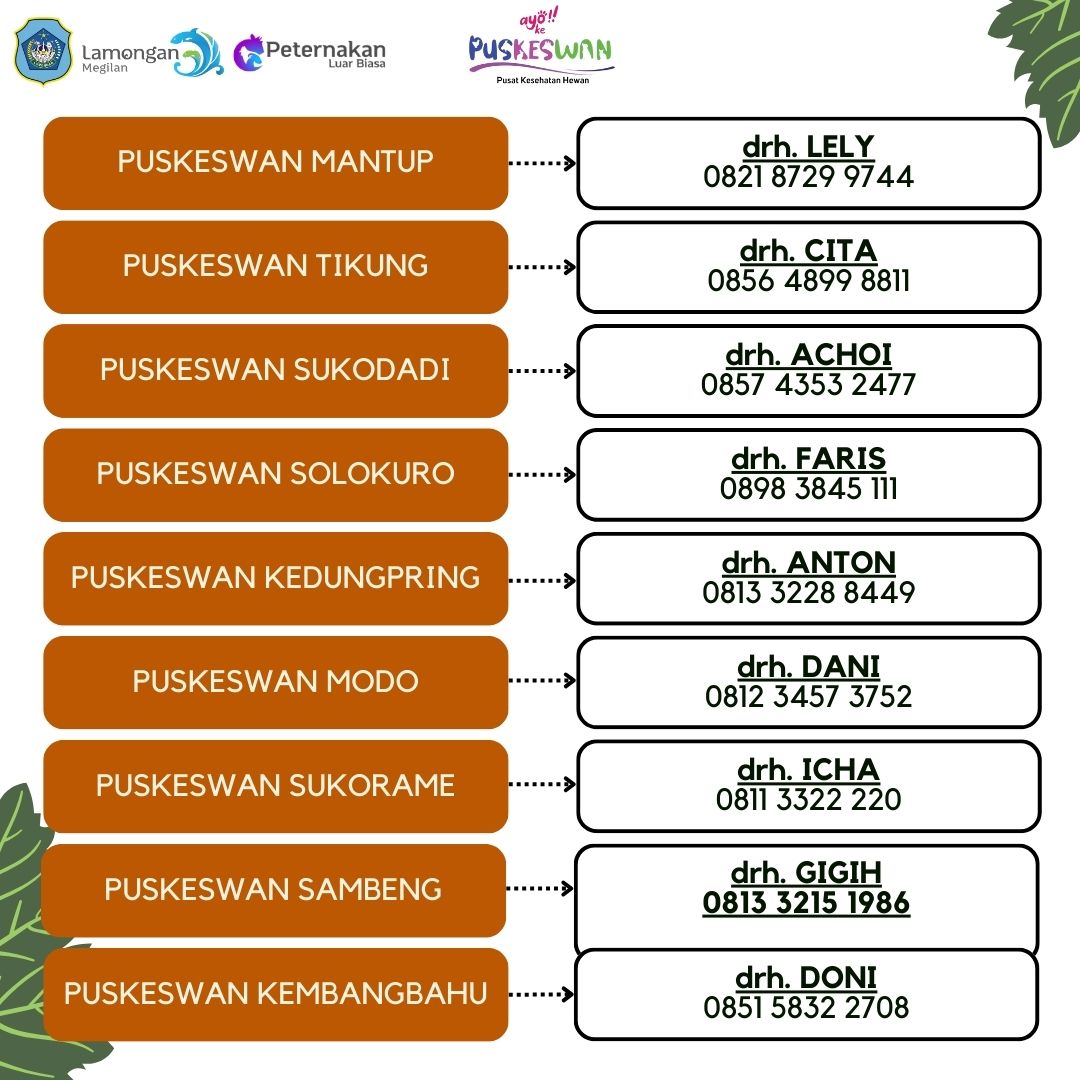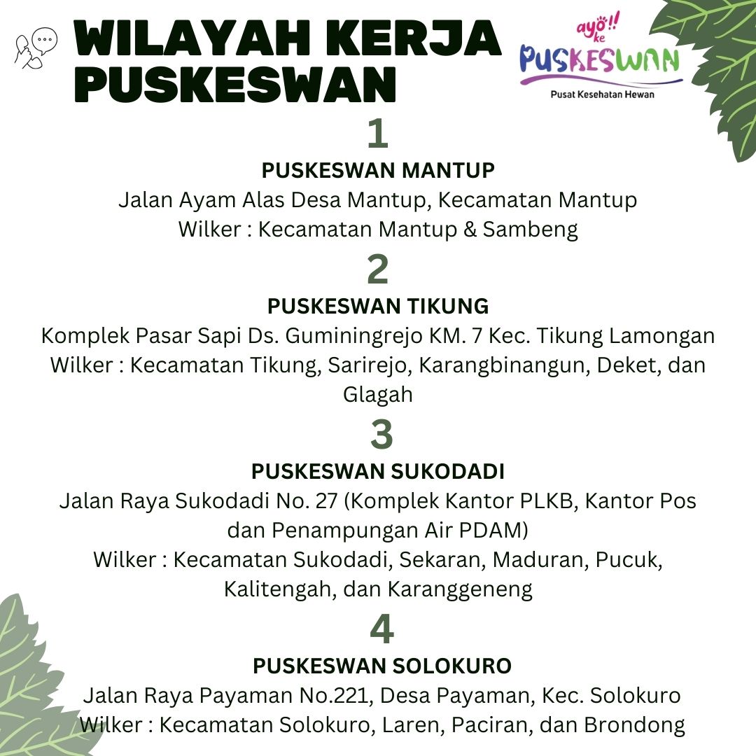 Halo Sobat Ternak Lamongan, Jika membutuhkan pelayanan kesehatan hewan, dapat menghubungi Puskeswan terdekat ya. Hewanku Sehat, Akupun Bahagia
