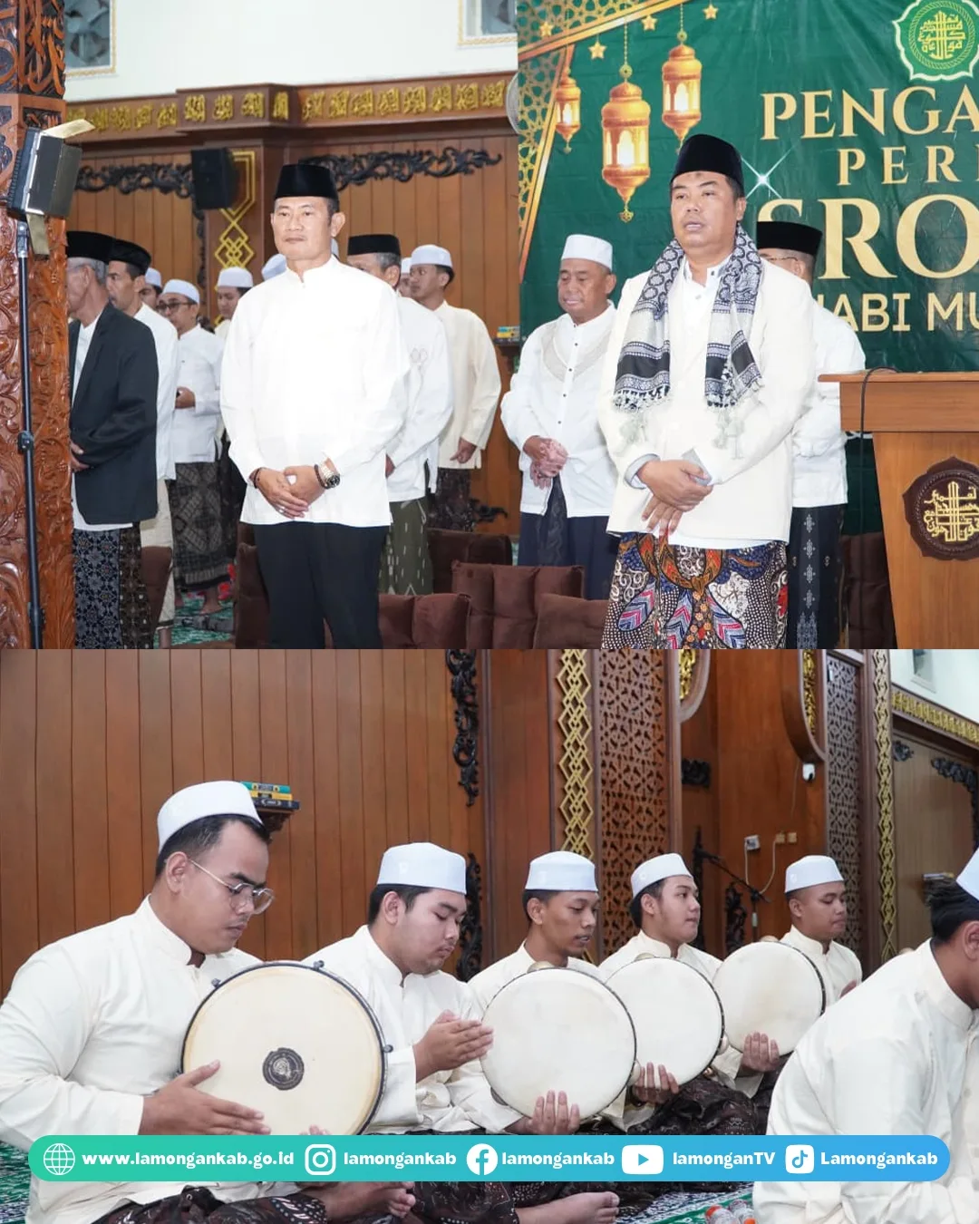 Bupati Lamongan Yuhronur Efendi menghadiri peringatan Isra Mikraj Nabi Muhammad SAW 1447 Hijriah yang diselenggarakan oleh Masjid Agung Lamongan, Senin (9/2) di Masjid Agung Lamongan malam ini.