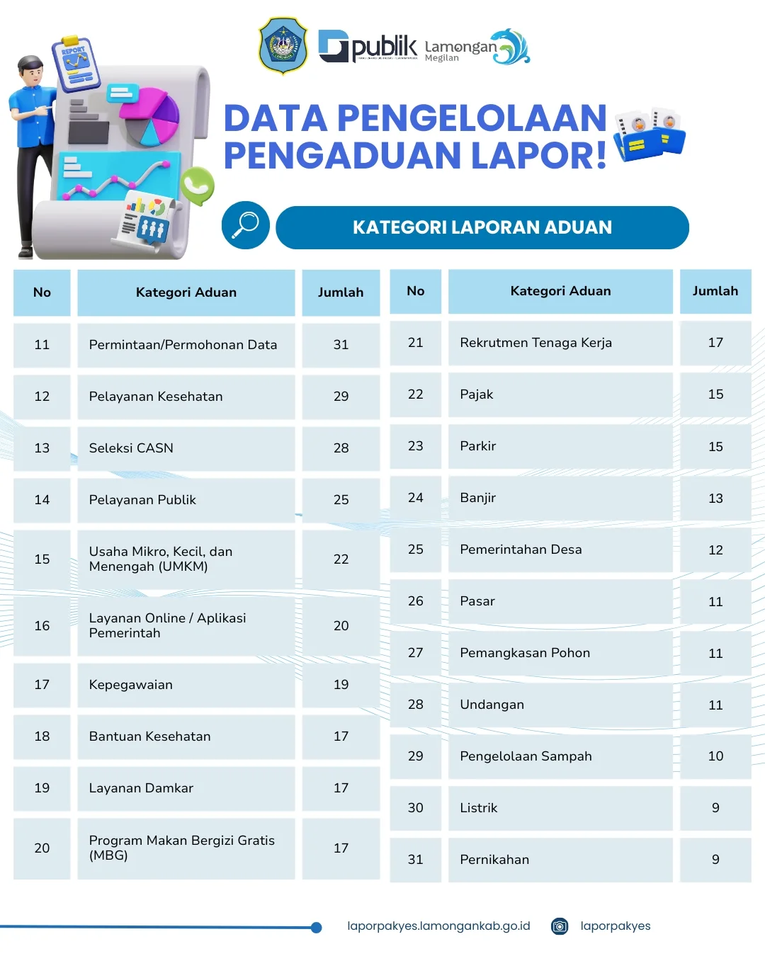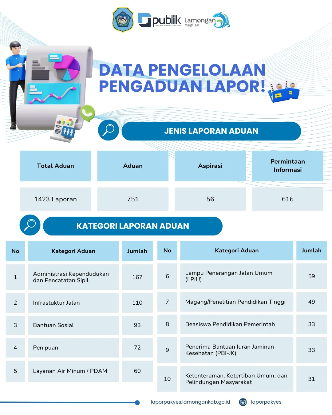 Berikut kami sampaikan rekapitulasi Layanan Pengaduan baik melalui, SP4N LAPOR! dan Kanal Lapor Pak Yes selama 2025📊💬