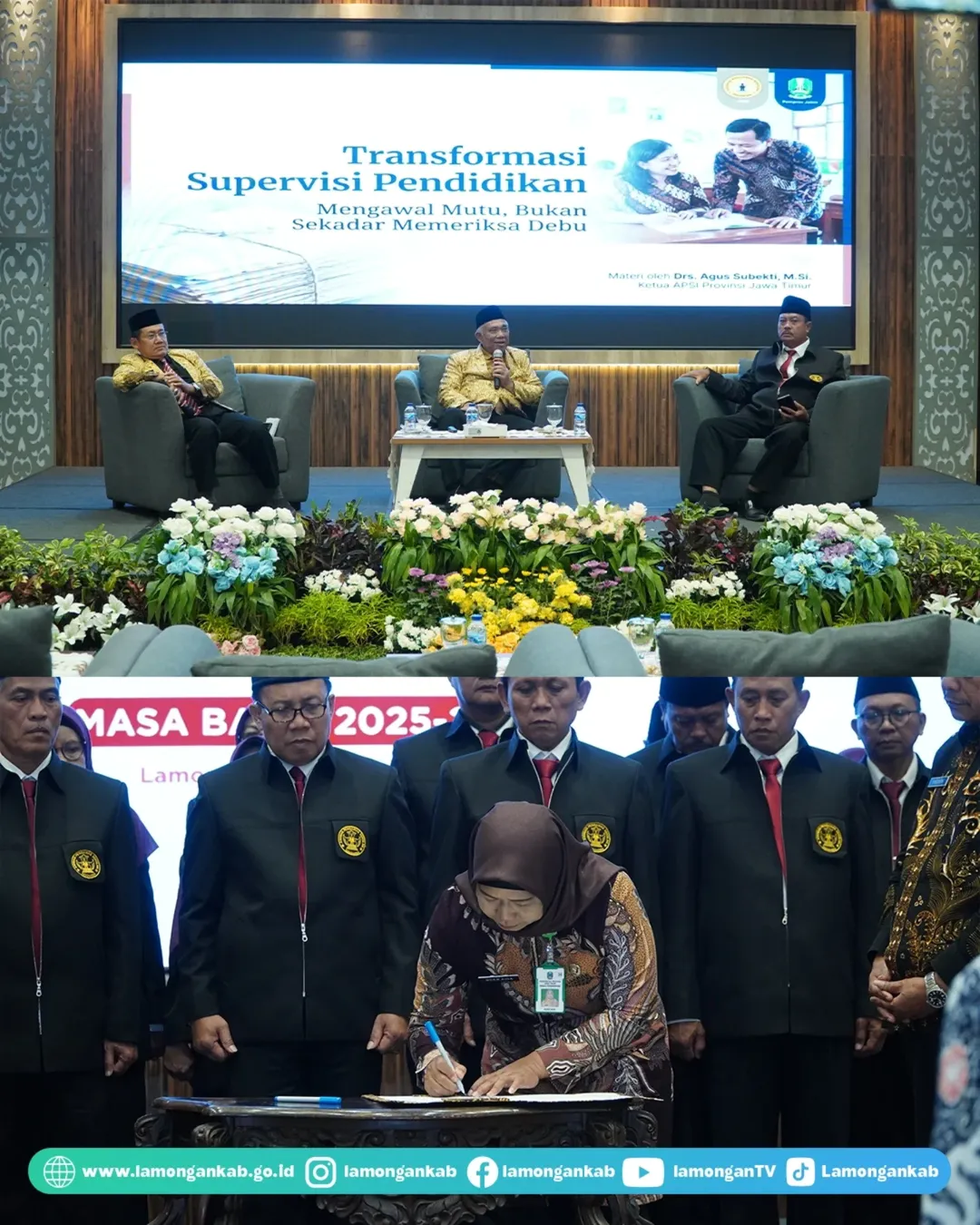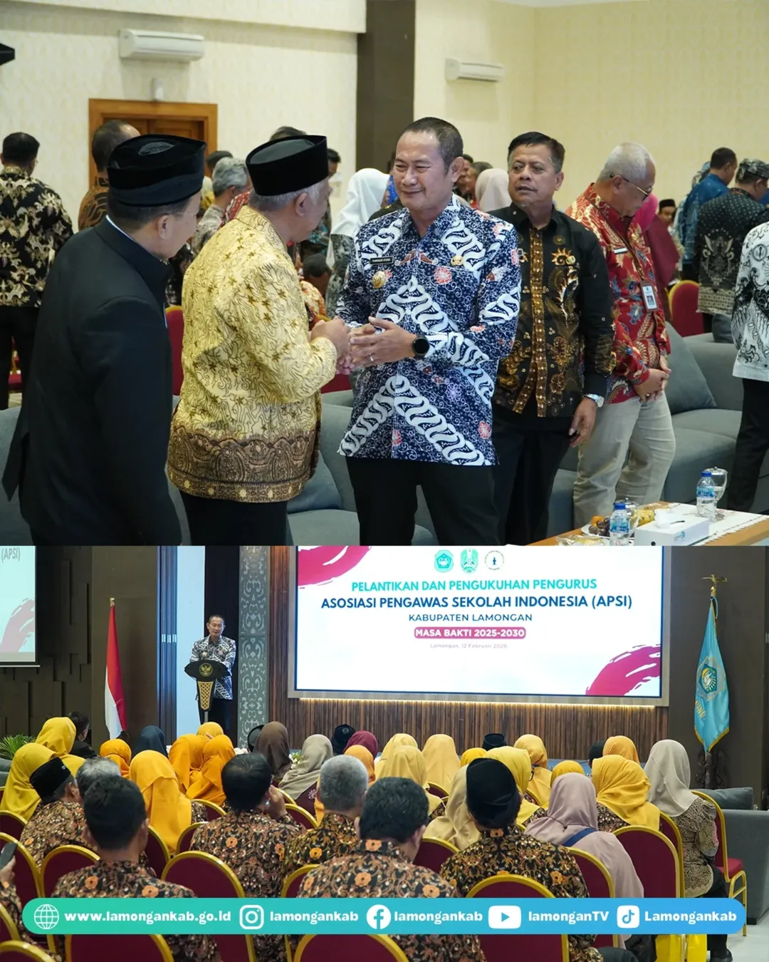 Memegang peranan penting dalam pengembangan pendidikan, Pengurus APSI (Asosiasi Pengawas Sekolah Indonesia) Kabupaten Lamongan masa bakti 2025 - 2030 resmi dilantik dan dikukuhkan oleh Dewan Pembina APSI yang juga Ketua APSI Jatim Agus Subekti, pada Kamis (12/2) di Aula Gajah Mada Pemkab Lamongan. Hadir dalam kesempatan tersebut, Bupati Lamongan Yuhronur Efendi.