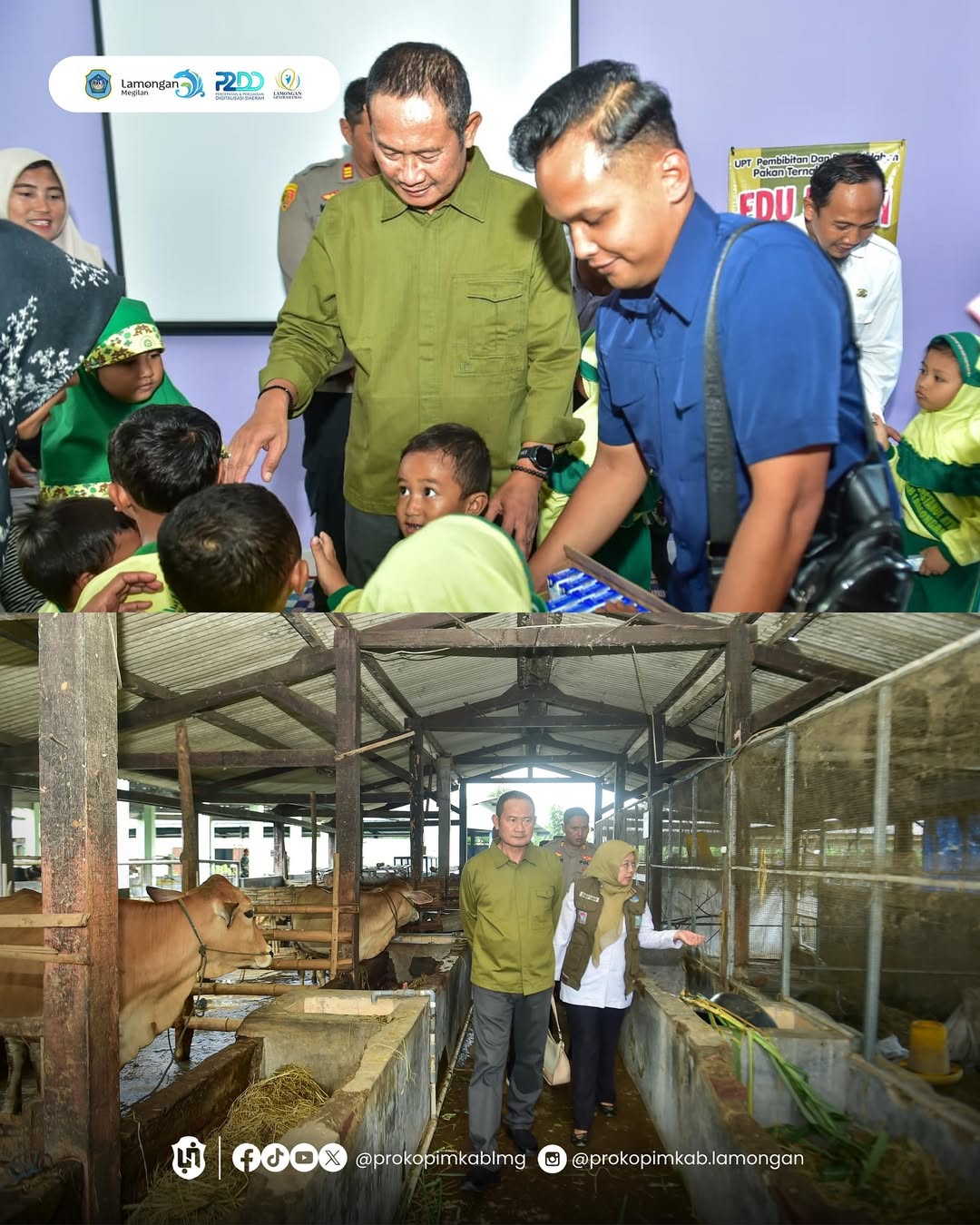 Berperan sebagai demonstration plot atau lahan percontohan bagi peternakan di Kabupaten Lamongan, Bupati Lamongan Yuhronur Efendi, mengunjungi EduFarm UPT Pembibitan dan Pengolahan Pakan Ternak, yang berlokasi di Kecamatan Mantup, Rabu (11/02). Pada kunjungan tersebut, Pak Yes meninjau secara langsung proses pengelolaan dan pemberian makan pada hewan ternak, sekaligus berdialog dengan para petugas terkait strategi edukasi kepada para pengunjung EduFarm.