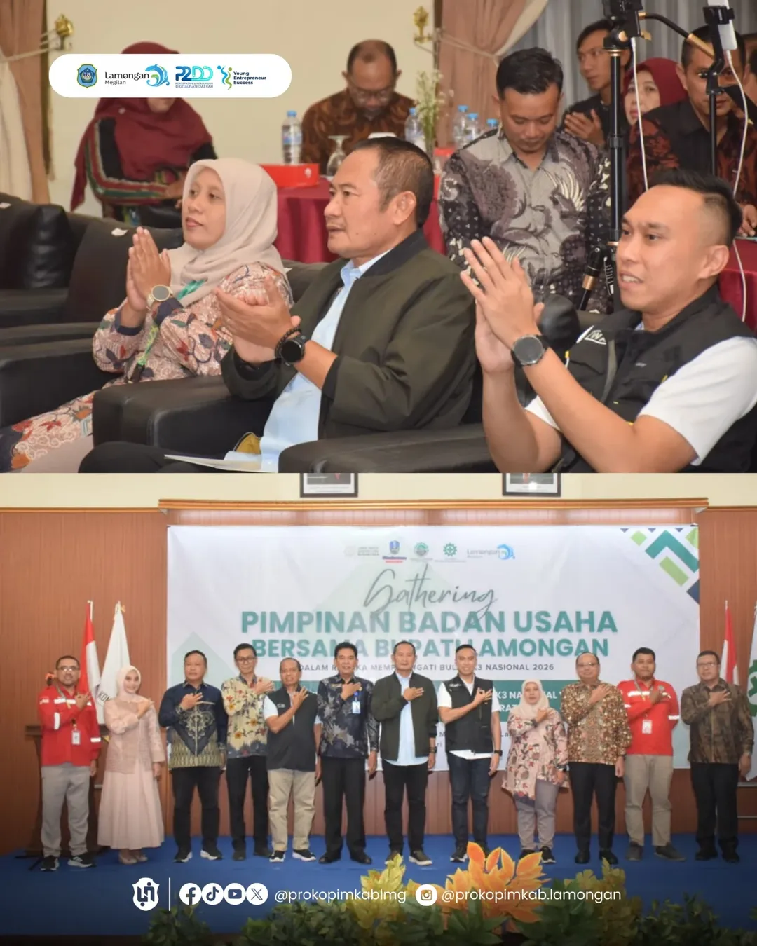 Bupati Lamongan, Yuhronur Efendi, menghadiri sekaligus menyerahkan penghargaan dalam kegiatan Gathering Pimpinan Badan Usaha dan Penyerahan Penghargaan K3 2026 yang digelar oleh Komunitas K3 Lamongan di Hotel Grand Mahkota, Kamis (12/2). Dalam kesempatan tersebut, Bupati YES menegaskan pentingnya membudayakan Keselamatan dan Kesehatan Kerja (K3) sebagai bagian yang terintegrasi dalam sistem dan perilaku kerja sehari-hari, bukan sekadar kewajiban administratif.