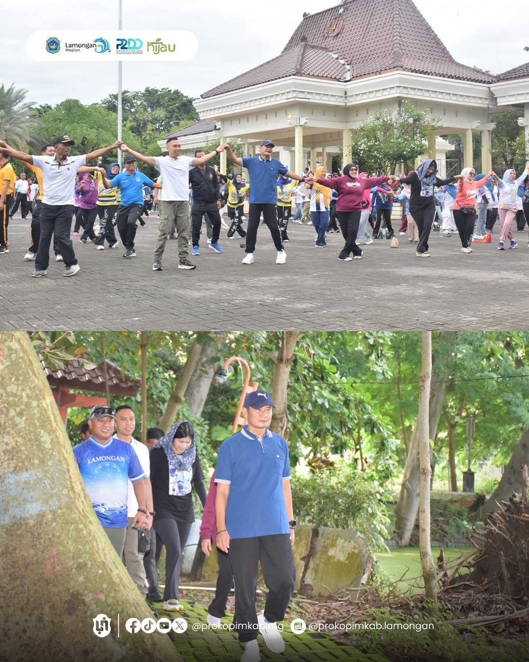 Menindaklanjuti arahan Presiden Republik Indonesia terkait Gerakan Indonesia ASRI (Aman, Sehat, Resik, Indah), Bupati Lamongan, Yuhronur Efendi, beserta jajaran Forkopimda dan OPD di Kabupaten Lamongan, ikut serta dalam pelaksanaan senam pagi yang berlangsung di Alun-Alun Lamongan, Jumat (13/02). Usai senam pagi, kegiatan dilanjutkan dengan kerja bakti membersihkan lingkungan yang ditentukan seperti di sekitar pasar, ruas jalan dan sekitar kantor masing-masing.