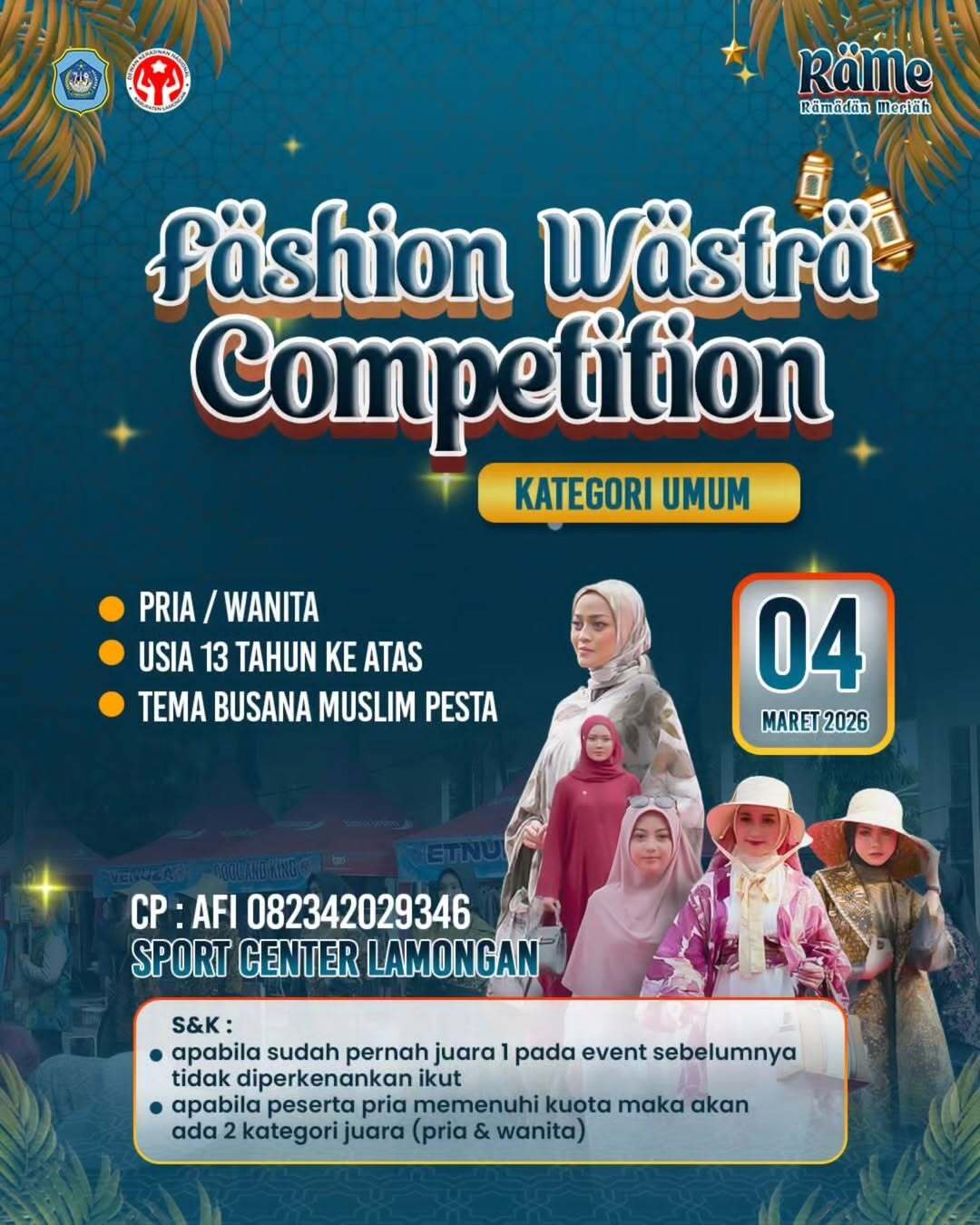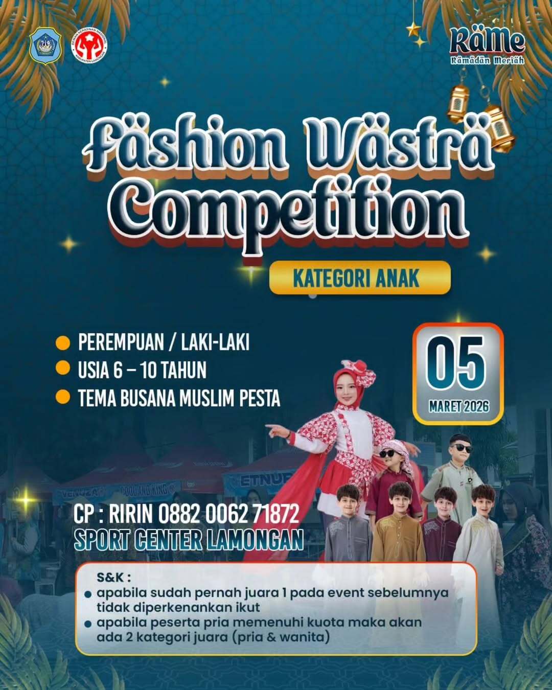 Dalam semangat kemeriahan dan kebersamaan bulan suci Ramadan, Pemerintah Kabupaten Lamongan menghadirkan rangkaian kegiatan RAME (Ramadan Meriah) yang akan digelar pada: