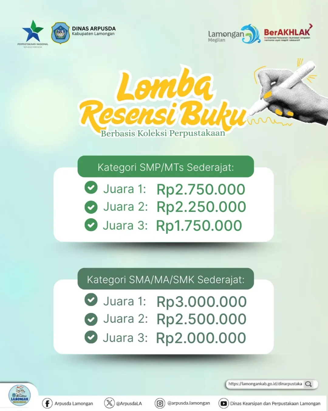 Ikuti Lomba Resensi Buku Berbasis Koleksi Perpustakaan untuk jenjang SMP/MTs dan SMA/MA/SMK Tahun 2026.
