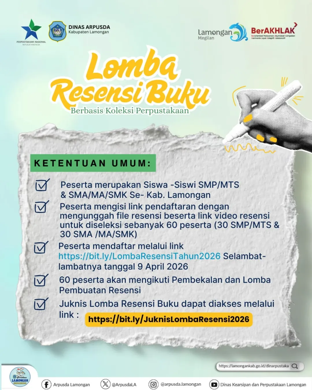 📌 Peserta mendaftar melalui link https://bit.ly/LombaResensiTahun2026