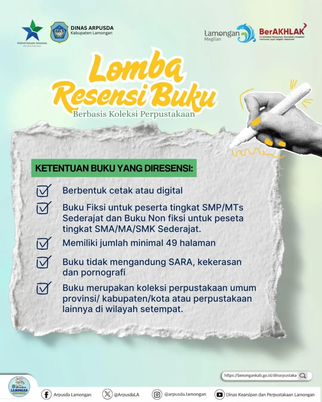 📌 Juknis Lomba Resensi Buku dapat diakses melalui link https://bit.ly/JuknisLombaResensi2026