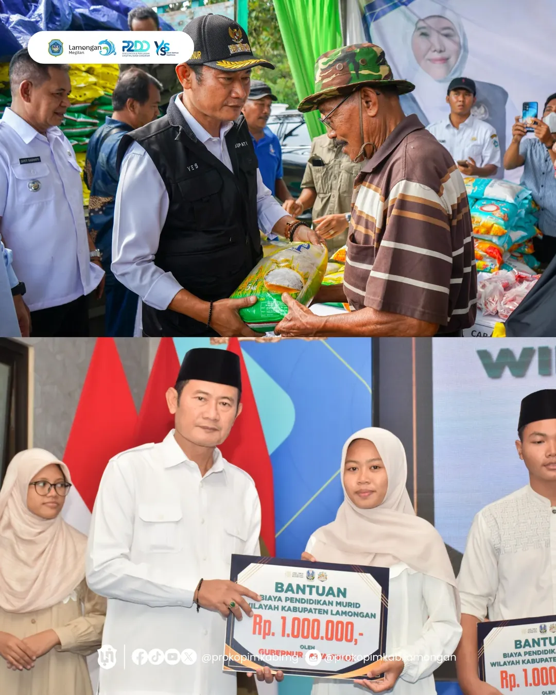 Pemerintah Kabupaten Lamongan terus bersinergi dengan Pemerintah Provinsi Jawa Timur dalam upaya peningkatan kesejahteraan sosial dan kualitas pendidikan. Hal tersebut terwujud melalui rangkaian kegiatan yang dihadiri langsung oleh Gubernur Khofifah dan didampingi Bupati YES pada Rabu (4/3), meliputi Pasar Murah, Sapa Bansos, hingga Peresmian Revitalisasi, Rehabilitasi, dan Pembangunan Sarana Prasarana SMA, SMK, SLB Se-Wilayah Gresik dan Lamongan.
