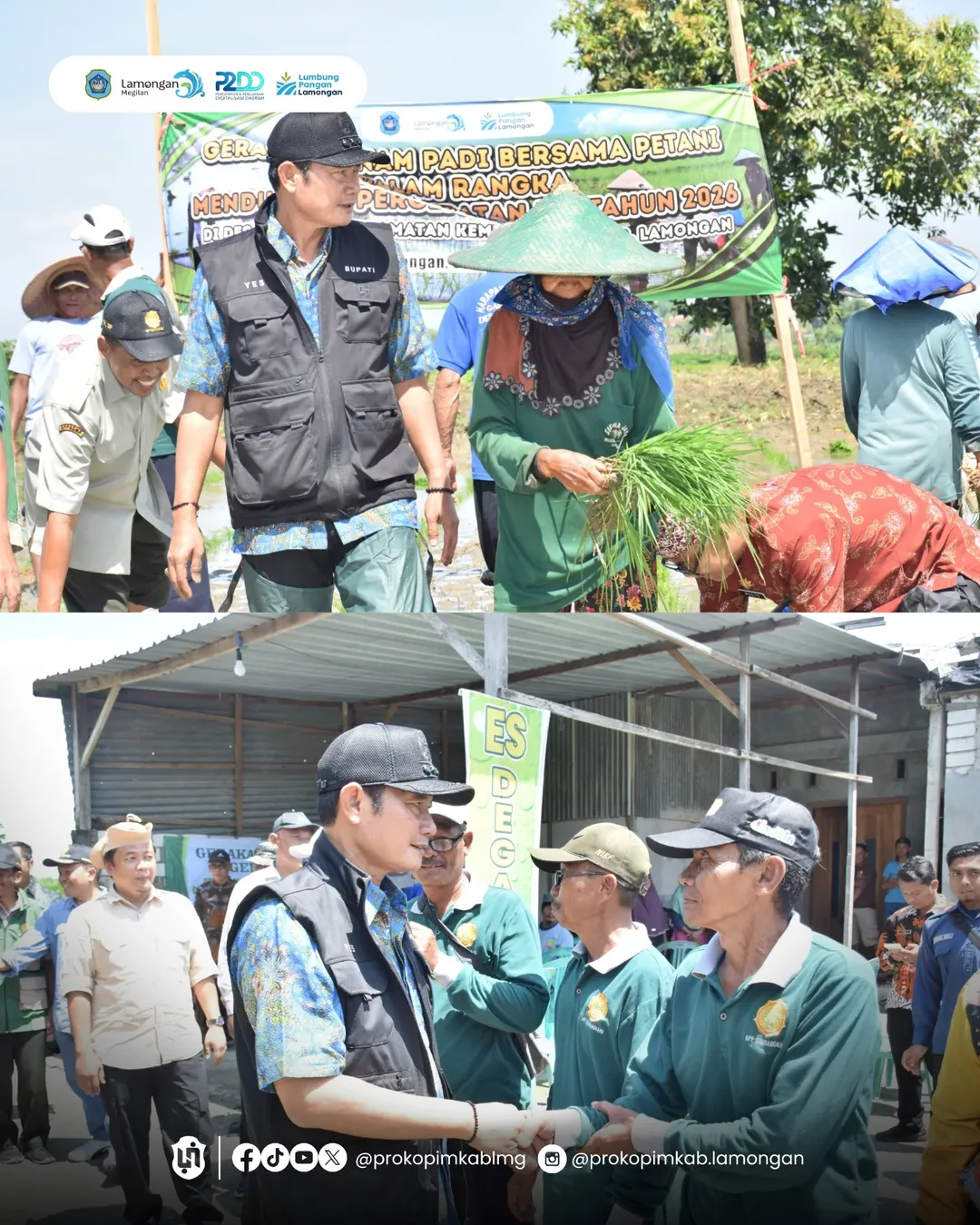 "Lahan baku kita hanya 95 ribu hektar, tetapi kita mampu panen 193 ribu hektar lebih. Ini semua berkat karakter megilan petani Lamongan, yang selalu ulet, berani, dan semangat menanam apapun kondisinya," ujar Bupati YES.