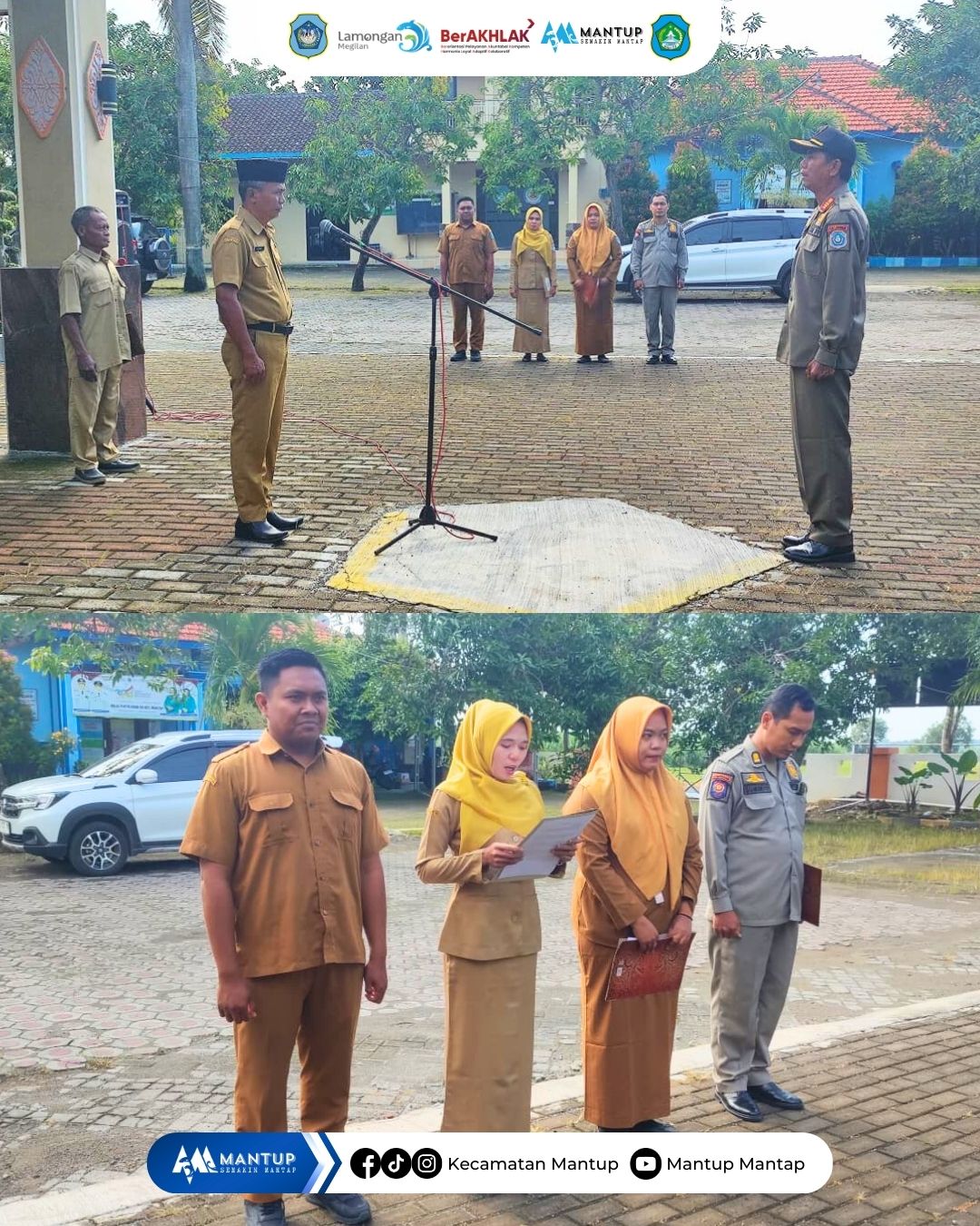 Pemerintah Kecamatan Mantup melaksanakan kegiatan apel Senin pagi di halaman Kantor Kecamatan Mantup yang diikuti oleh seluruh Aparatur Sipil Negara (ASN) dan staf di lingkungan Kecamatan Mantup pada Senin (9/3). Apel tersebut dipimpin langsung oleh Camat Mantup sebagai bentuk pembinaan kedisiplinan serta sarana penyampaian arahan kepada seluruh pegawai.