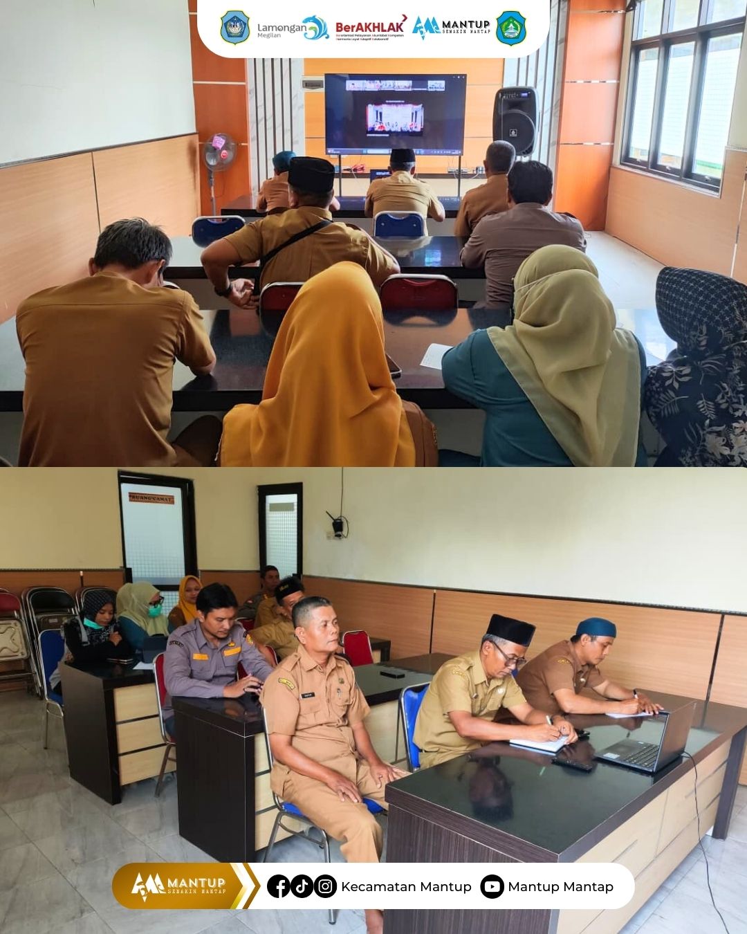 Dalam rangka memperkuat koordinasi penyelenggaraan pemerintahan di tingkat kecamatan, Camat Mantup mengikuti kegiatan Rapat Koordinasi Camat se-Kabupaten Lamongan yang dilaksanakan secara daring melalui Zoom Meeting pada Selasa (10/3). Kegiatan tersebut diikuti oleh seluruh camat se-Kabupaten Lamongan dan dipimpin langsung oleh Bupati dan Wakil Bupati Lamongan beserta jajaran Pemerintah Kabupaten Lamongan.