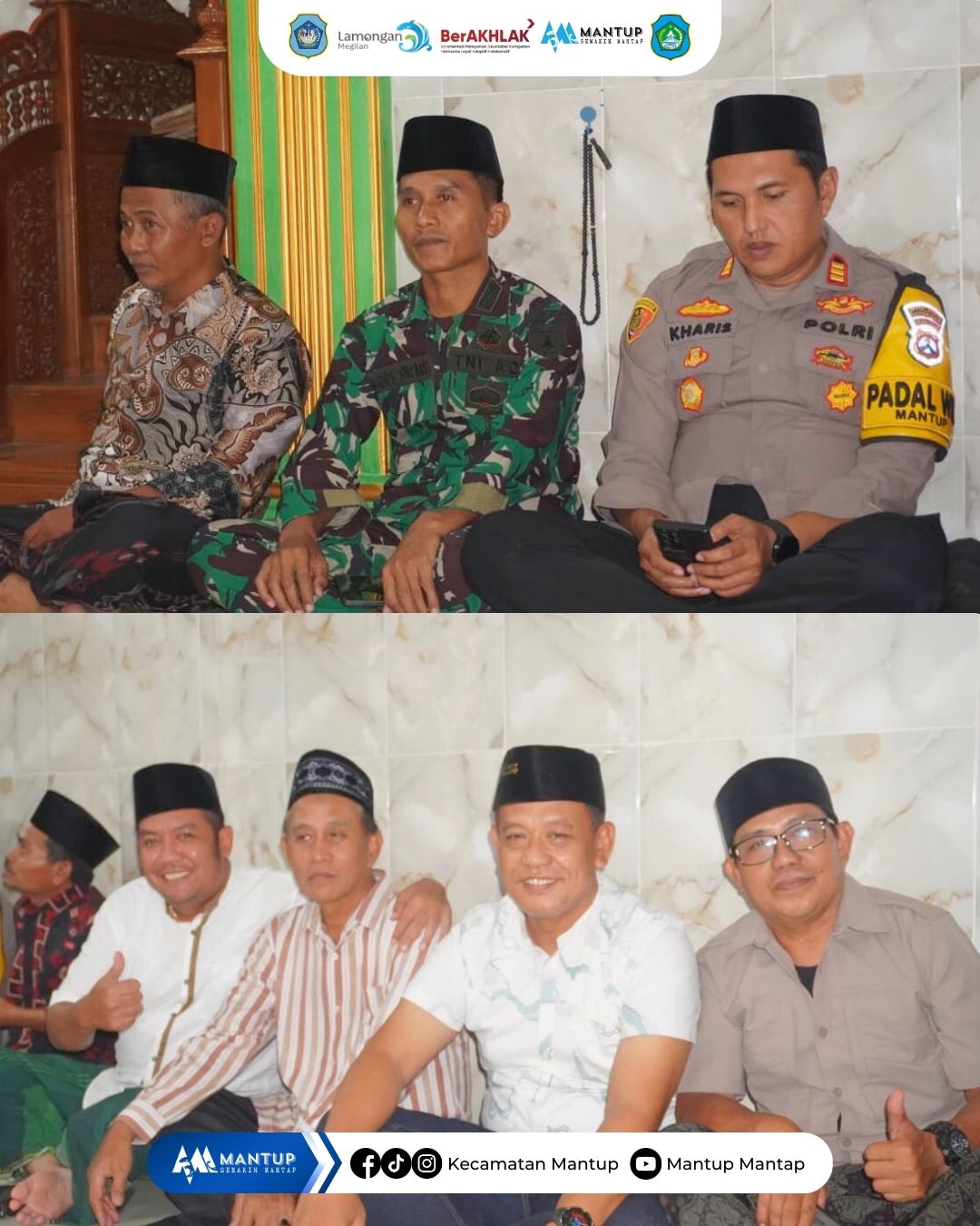 Dalam rangka mempererat silaturahmi serta meningkatkan kebersamaan antara pemerintah dan masyarakat di bulan suci Ramadan, kegiatan Safari Ramadan digelar di Masjid Jami’ Nurul Islam Dusun Jagir Desa Tunggunjagir, Kecamatan Mantup pada Selasa (11/3). Kegiatan tersebut dihadiri oleh jajaran Forkopimcam Mantup, Kepala Desa Tunggunjagir beserta perangkat desa, Kepala Desa se-Kecamatan Mantup, tokoh agama, organisasi masyarakat, tokoh masyarakat, serta warga setempat.