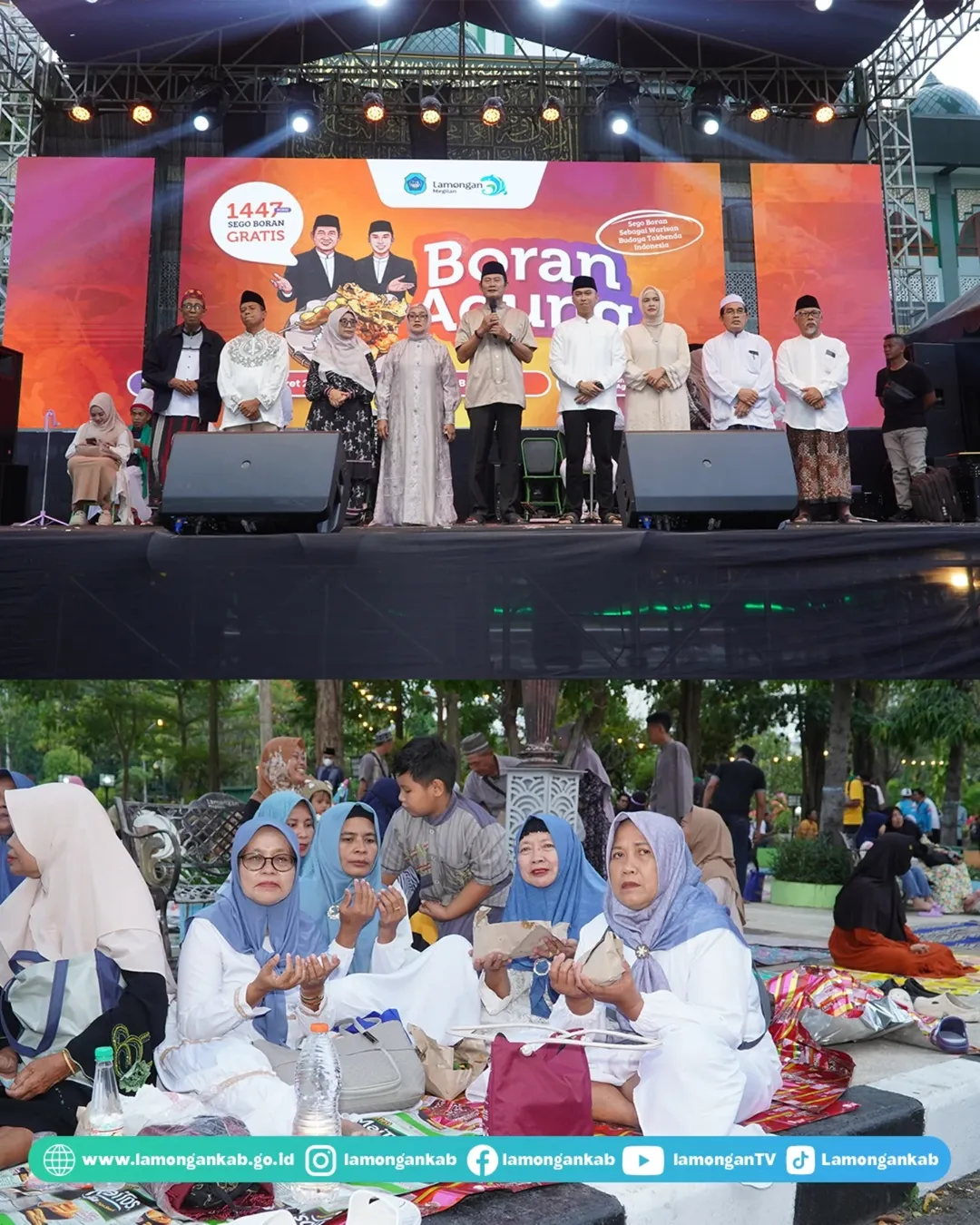 Sebagai bentuk syukur atas ditetapkannya Nasi Boran sebagai WBTb (Warisan Budaya Takbenda) Indonesia, Pemerintah Kabupaten Lamongan pada Minggu (15/3) menggelar kegiatan Boran Agung di depan Halaman Masjid Agung Lamongan. Dalam kegiatan yang dibuka secara langsung oleh Bupati Lamongan Yuhronur Efendi ini dibagikan 1.447 porsi Nasi Boran kepada masyarakat Lamongan.