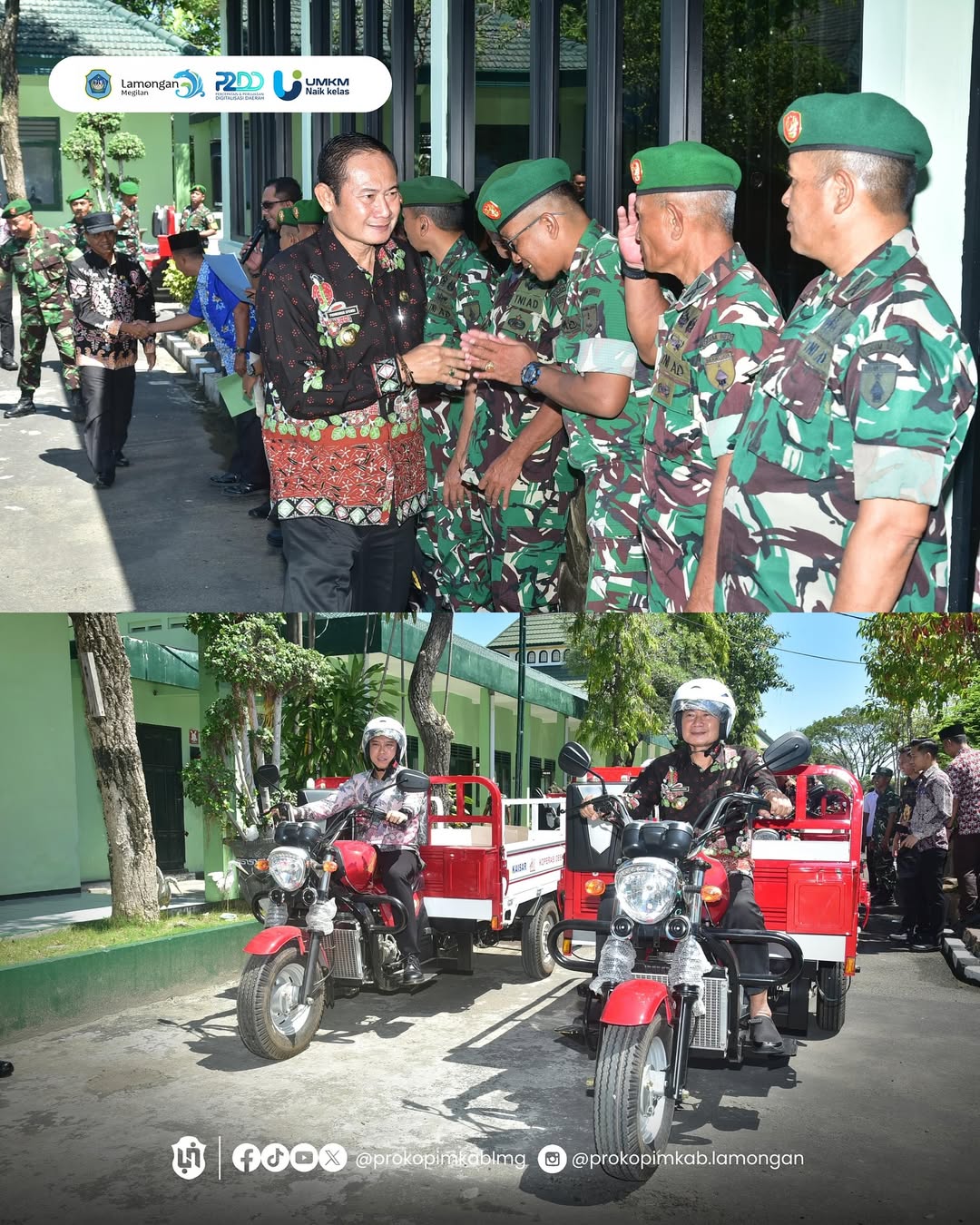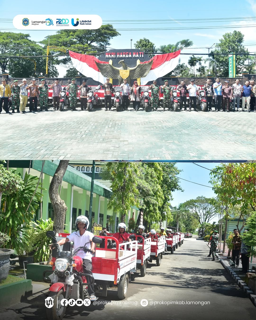 Dalam rangka mendukung percepatan pembangunan Koperasi Desa/Kelurahan Merah Putih (KDKMP) di Kabupaten Lamongan, Bupati Lamongan, Yuhronur Efendi, secara simbolis memberangkatkan pendistribusian fasilitas penunjang KDKMP yakni kendaraan roda tiga, di halaman Makodim 0812/Lamongan, Jumat (13/3). Bupati Yuhronur berharap agar fasilitas tersebut dirawat dan dimanfaatkan sebaik-baiknya, guna menunjang mobilisasi di KDKMP.